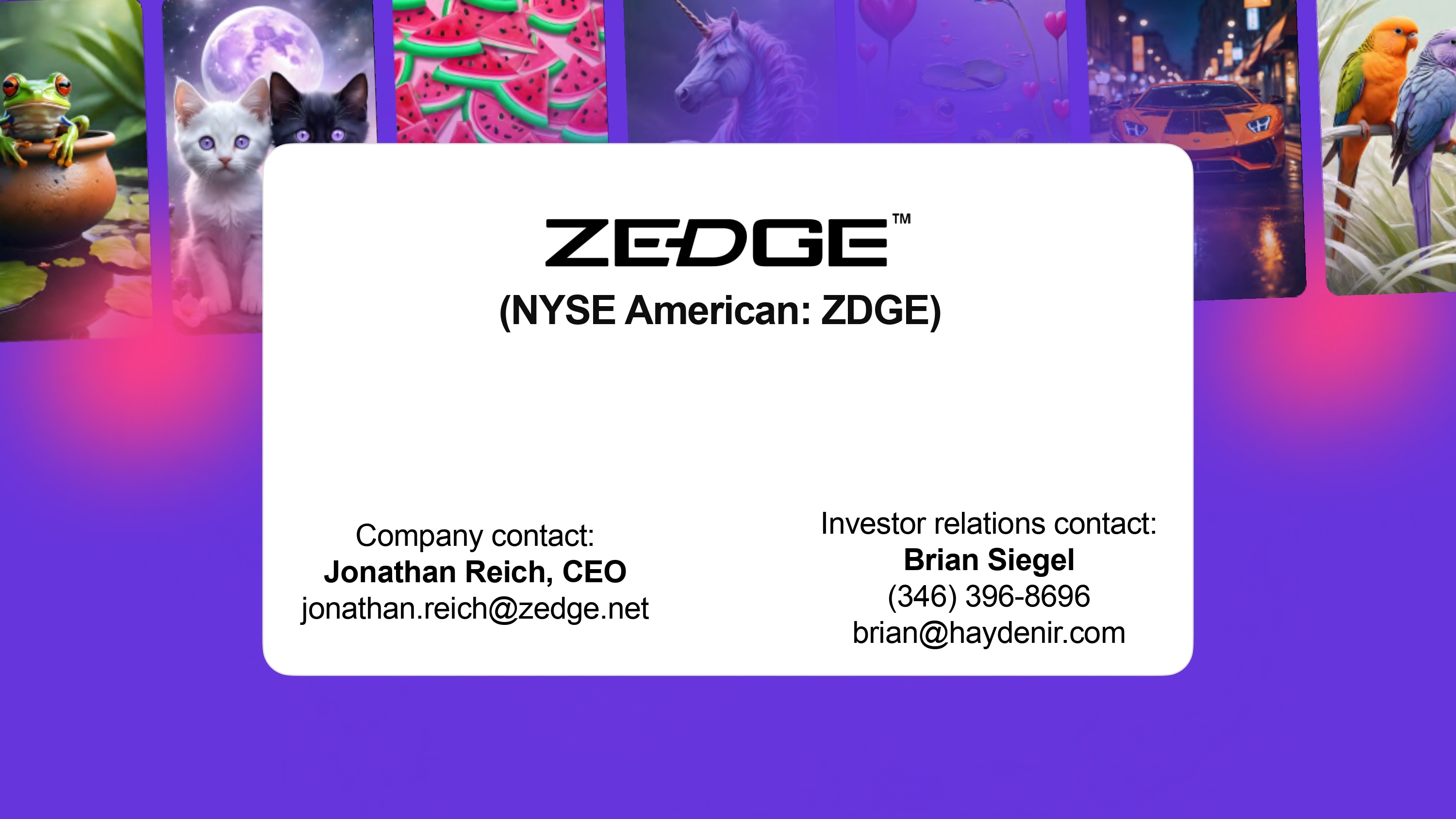 Company contact: Jonathan Reich, CEO jonathan.reich@zedge.net Investor relations contact: Brian Siegel (346) 396 - 8696 brian@haydenir.com (NYSE American: ZDGE)