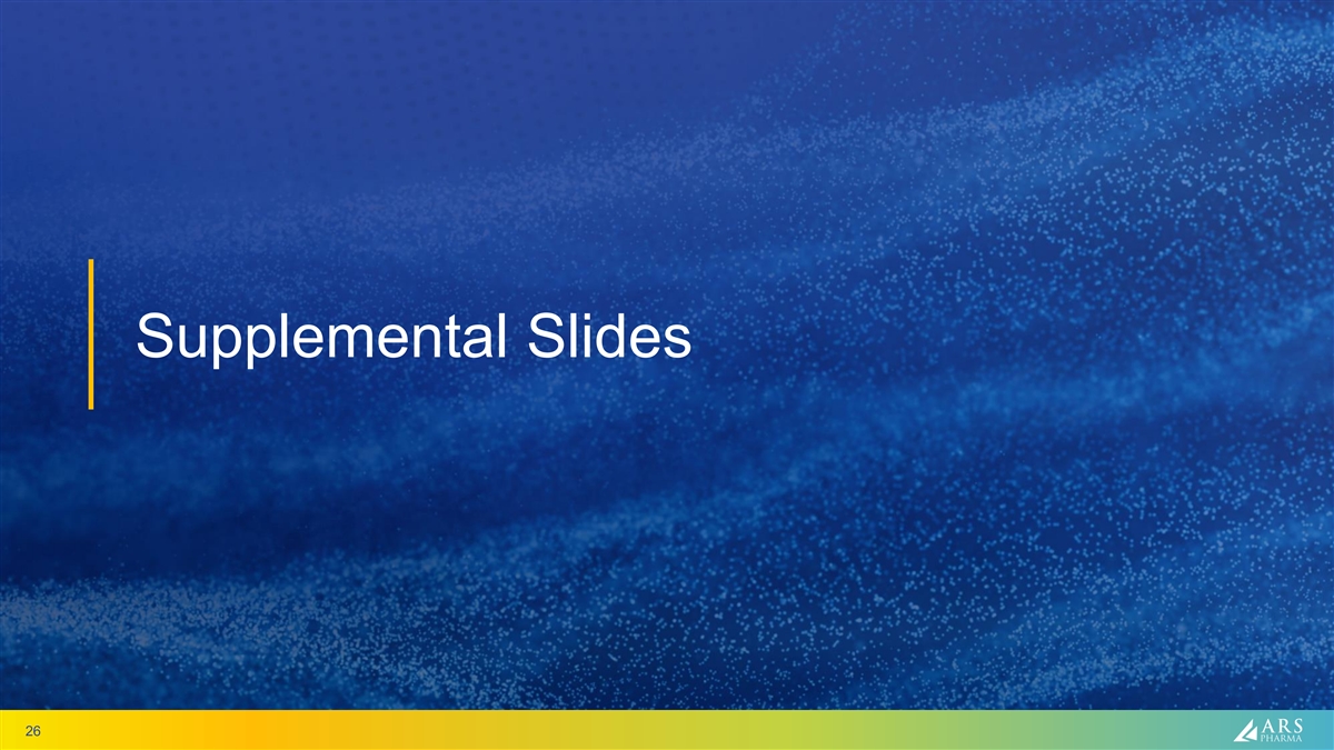 neffy is positioned potentially to transform the treatment of serious allergic reactions PK superior to IM No needle, no fear, no wait Less (Reference listed drug & Easier to use and more reliable gold standard) Effective Hesitation delivery than with autoinjectors offers therapeutic exposures to Dose (less chance of failed dosing) and makes it easy to switch No meaningful Always available side effects with child, parent Safe Compact No needle-related and caregiver injuries possible No serious safety risks associated with injection 100% of adults (N=105) devices (needle) Easy No Needle successfully dosed No blood vessel injections, to Use in human factors studies no lacerations, no bone injections 25