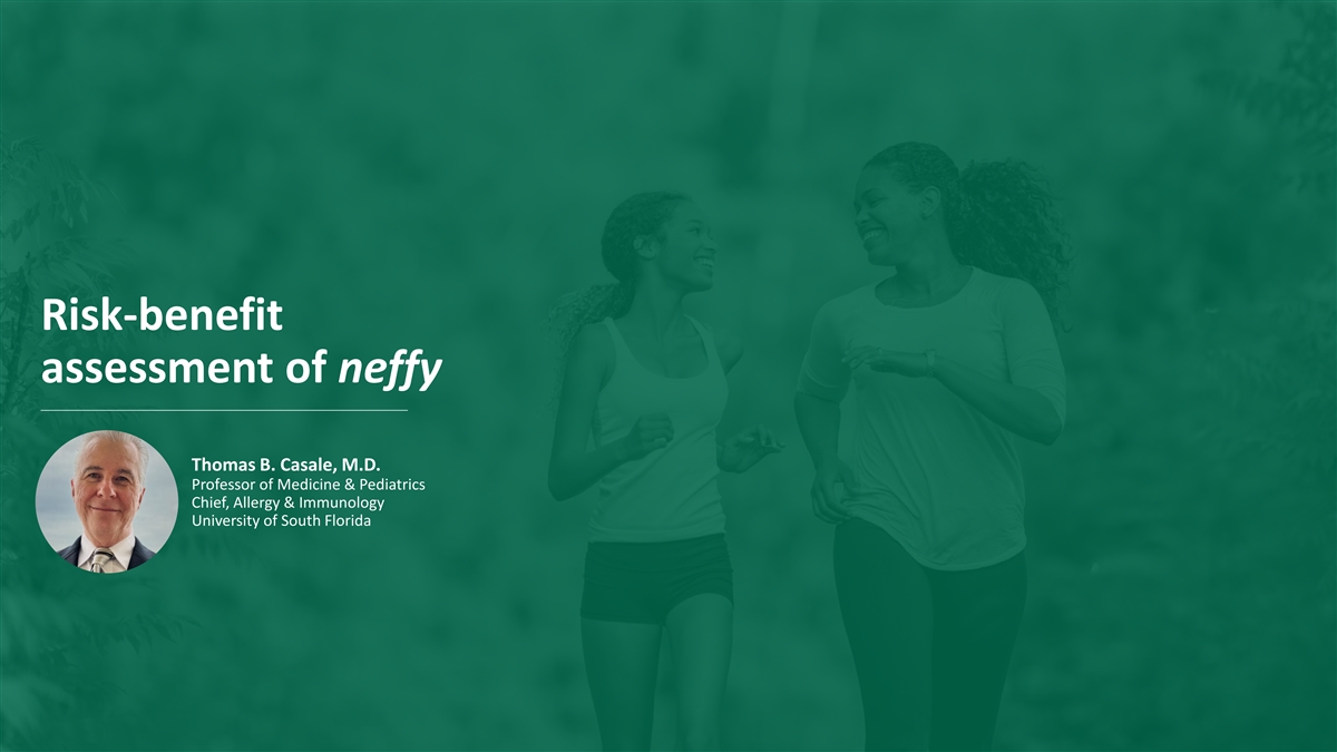 Risk-benefit assessment of neffy Thomas B. Casale, M.D. Professor of Medicine & Pediatrics Chief, Allergy & Immunology University of South Florida