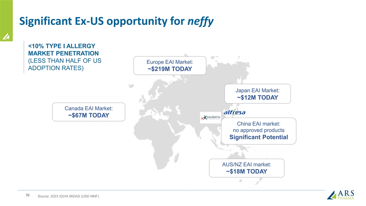 Significant Ex-US opportunity for neffy <10% TYPE I ALLERGY MARKET PENETRATION (LESS THAN HALF OF US Europe EAI Market: ADOPTION RATES) ~$219M TODAY Japan EAI Market: ~$12M TODAY Canada EAI Market: ~$67M TODAY China EAI market: no approved products Significant Potential AUS/NZ EAI market: ~$18M TODAY 70 Source: 2023 IQVIA MIDAS (USD MNF)
