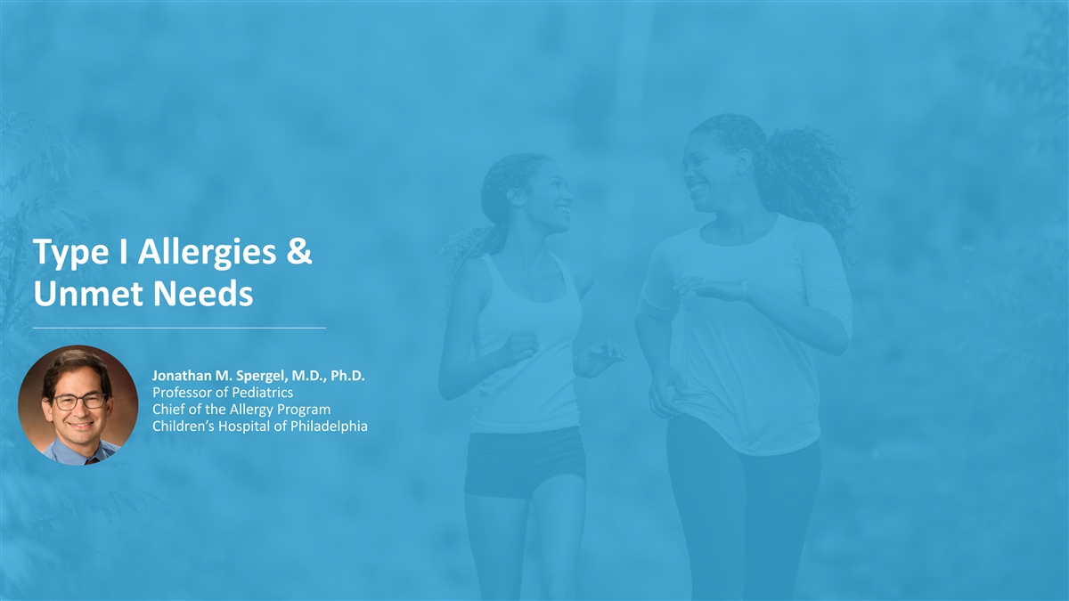 Type I Allergies & Unmet Needs Jonathan M. Spergel, M.D., Ph.D. Professor of Pediatrics Chief of the Allergy Program Children’s Hospital of Philadelphia