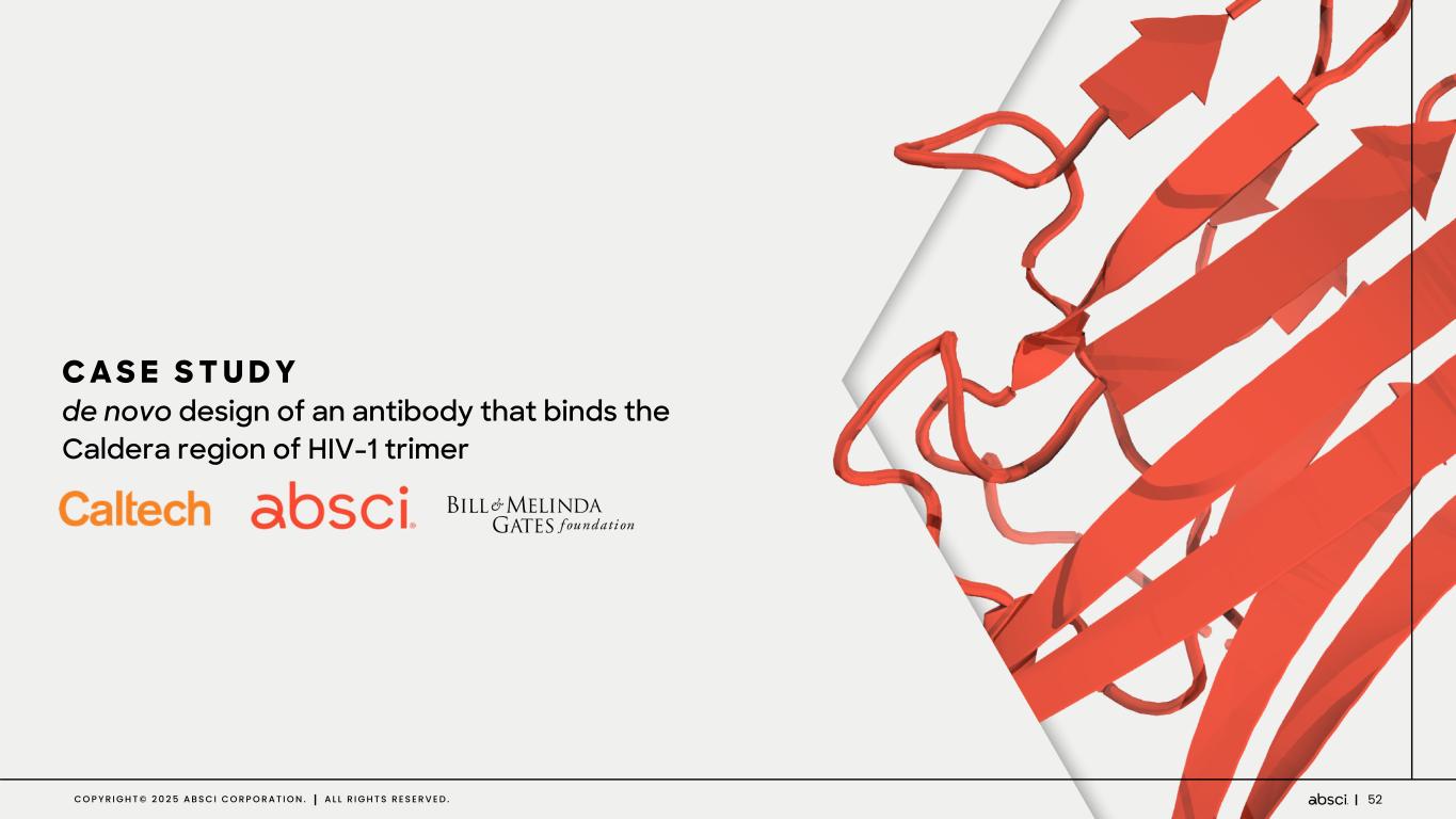 52C O P Y R I G H T © 2 0 2 5 A B S C I C O R P O R A T I O N . A L L R I G H T S R E S E R V E D . C A S E S T U D Y de novo design of an antibody that binds the Caldera region of HIV-1 trimer
