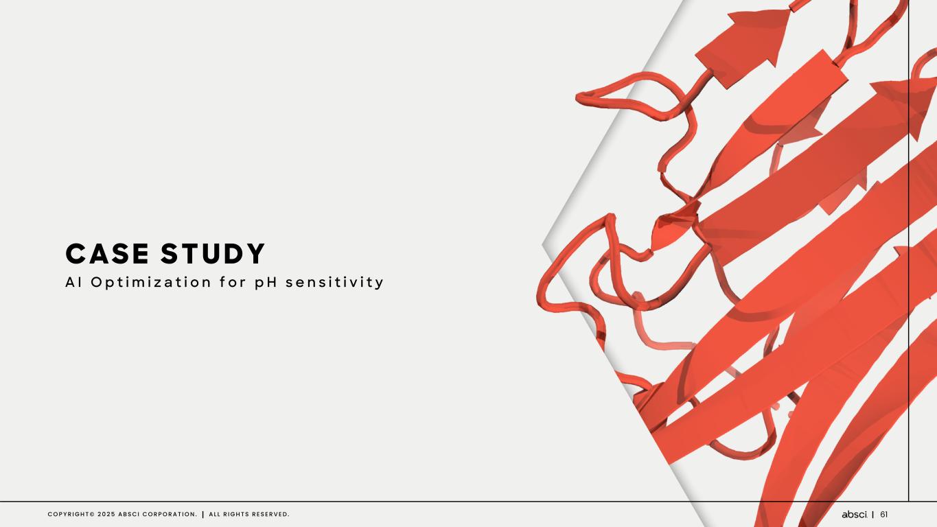 61C O P Y R I G H T © 2 0 2 5 A B S C I C O R P O R A T I O N . A L L R I G H T S R E S E R V E D . CASE STUDY A I O p t i m i z a t i o n f o r p H s e n s i t i v i t y