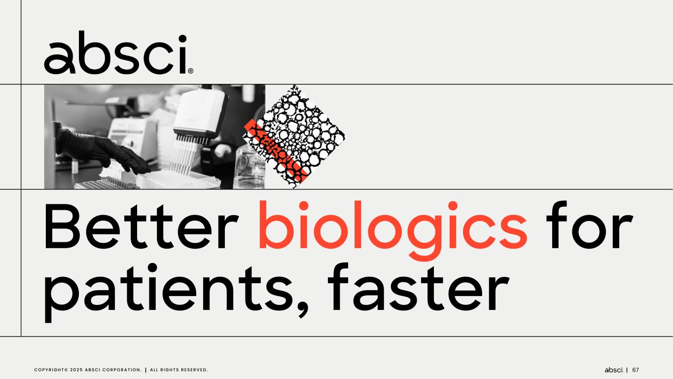 Better biologics for patients, faster 67C O P Y R I G H T © 2 0 2 5 A B S C I C O R P O R A T I O N . A L L R I G H T S R E S E R V E D .