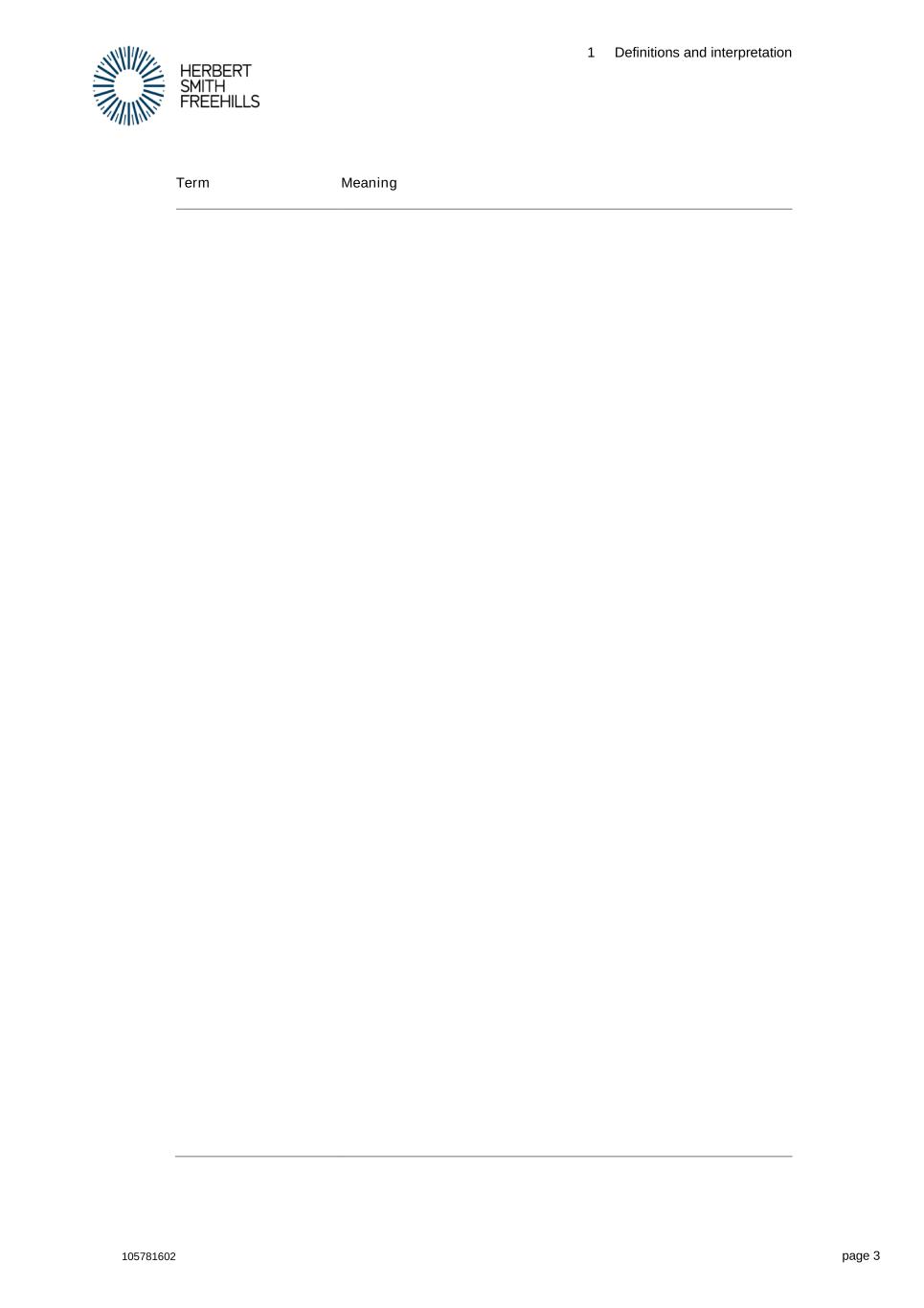 1 Definitions and interpretation 105781602 page 3 Term Meaning