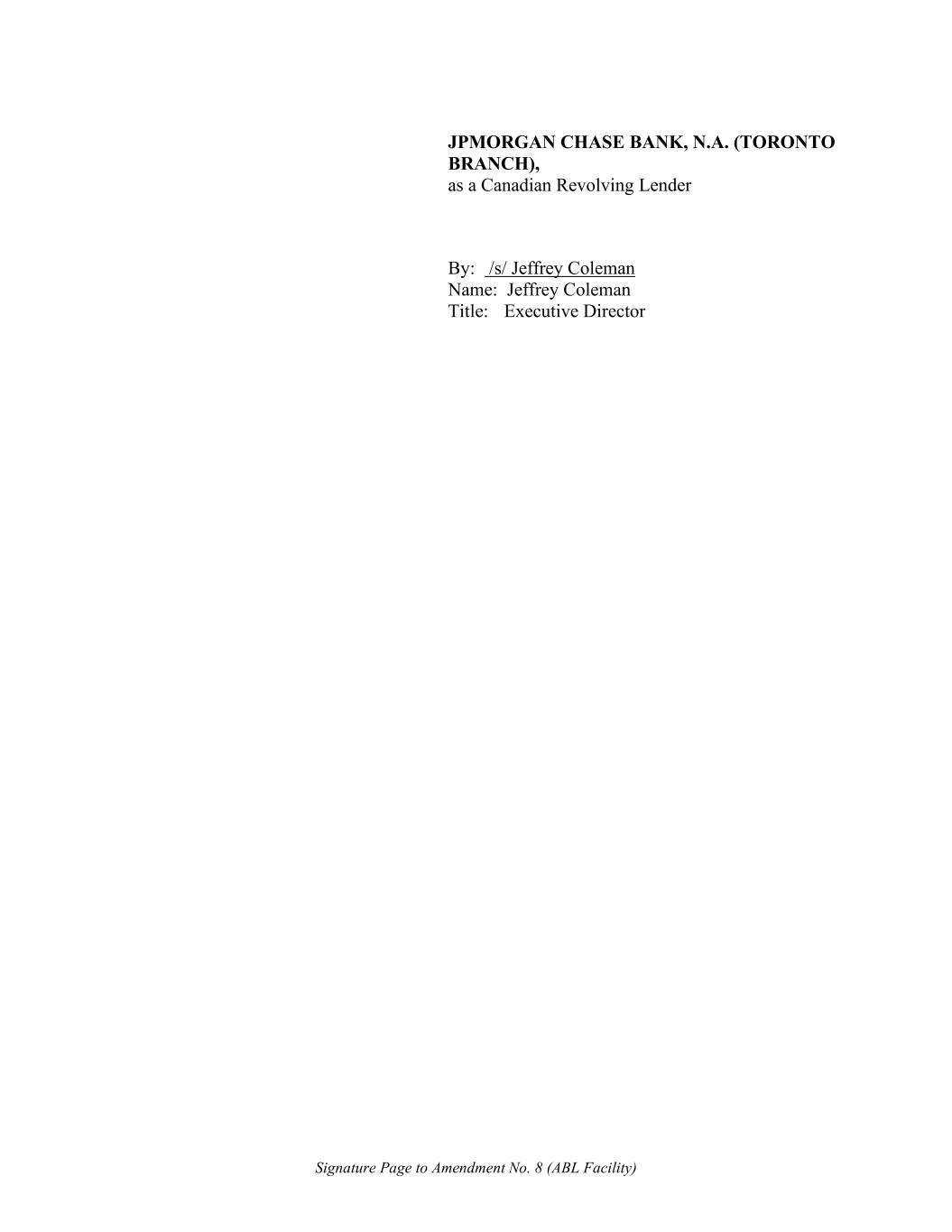 Signature Page to Amendment No. 8 (ABL Facility) JPMORGAN CHASE BANK, N.A. (TORONTO BRANCH), as a Canadian Revolving Lender By: /s/ Jeffrey Coleman Name: Jeffrey Coleman Title: Executive Director