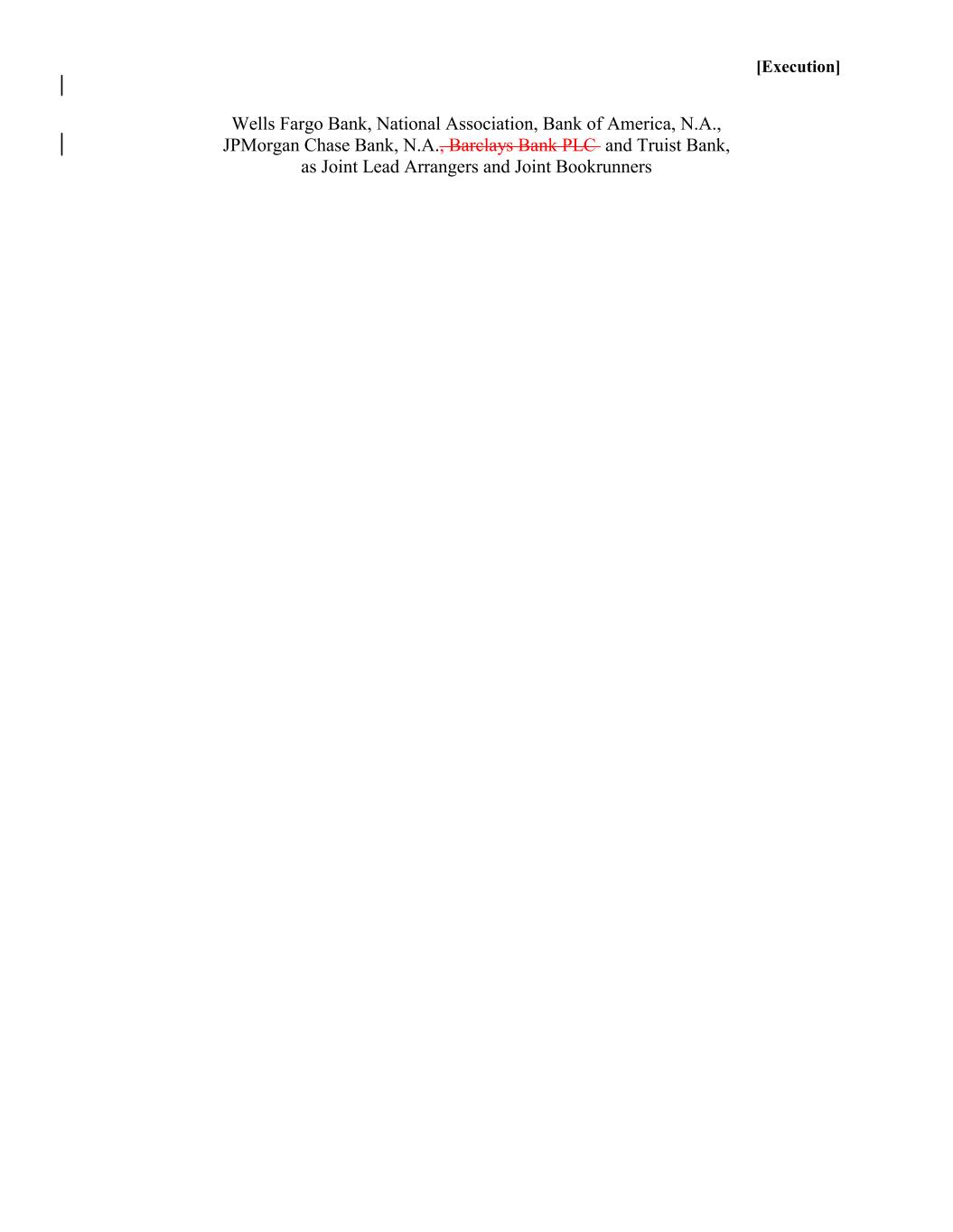 [Execution] Wells Fargo Bank, National Association, Bank of America, N.A., JPMorgan Chase Bank, N.A., Barclays Bank PLC and Truist Bank, as Joint Lead Arrangers and Joint Bookrunners