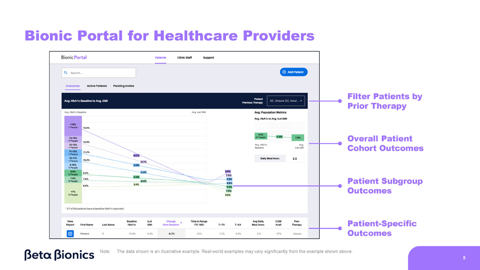 Bionic Portal for Healthcare Providers Filter Patients by Prior Therapy Overall Patient Cohort Outcomes Patient Subgroup Outcomes Patient - Specific Outcomes Note: 5 The data shown is an illustrative example. Real - world examples may vary significantly from the example shown above.