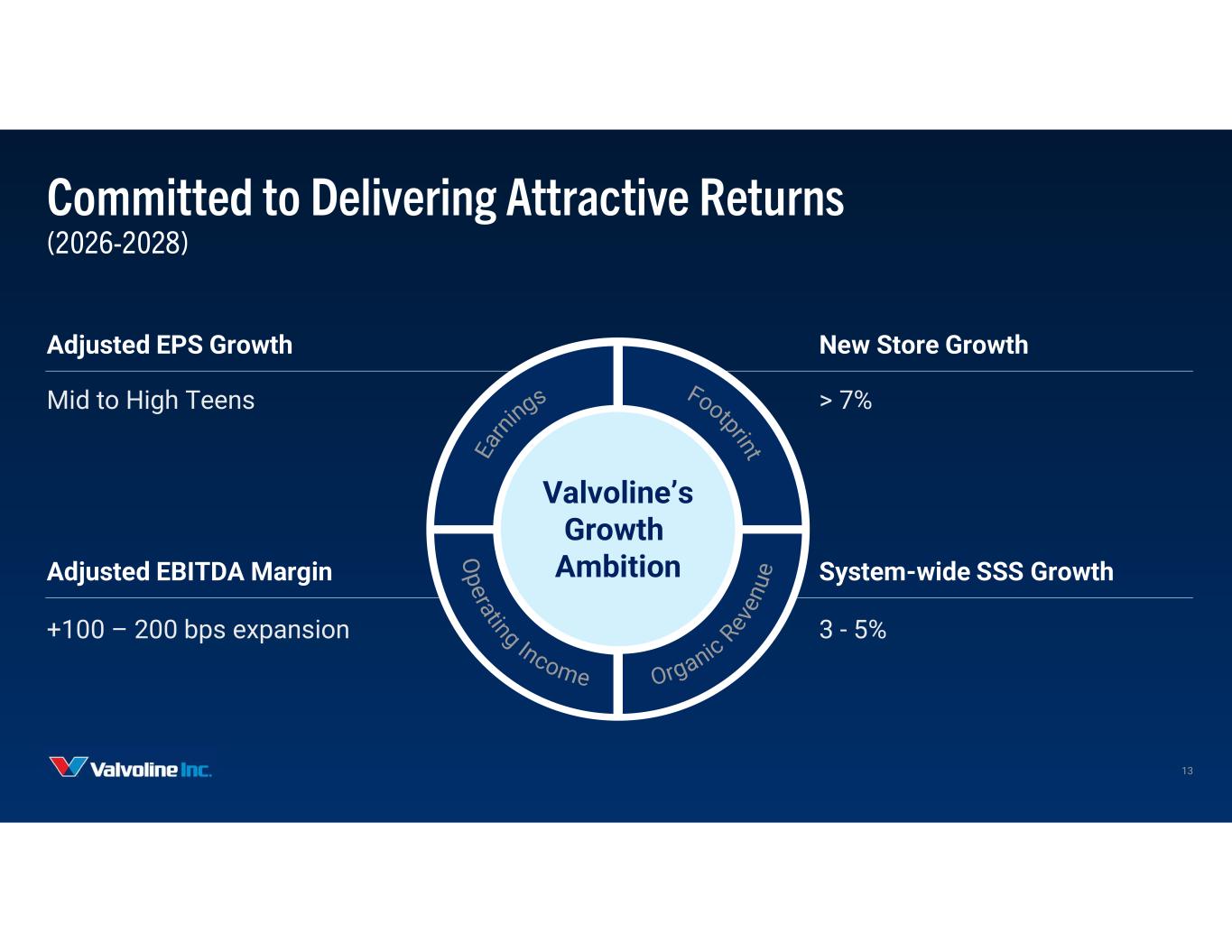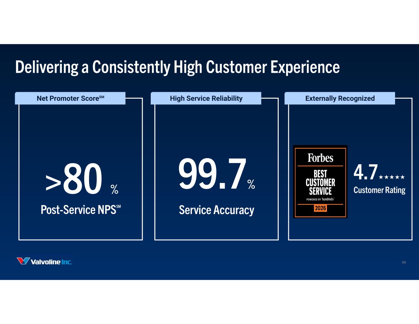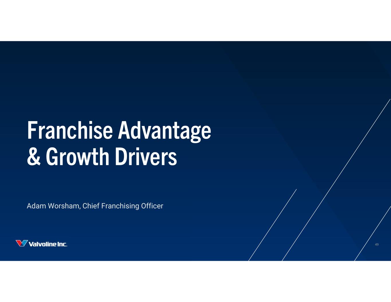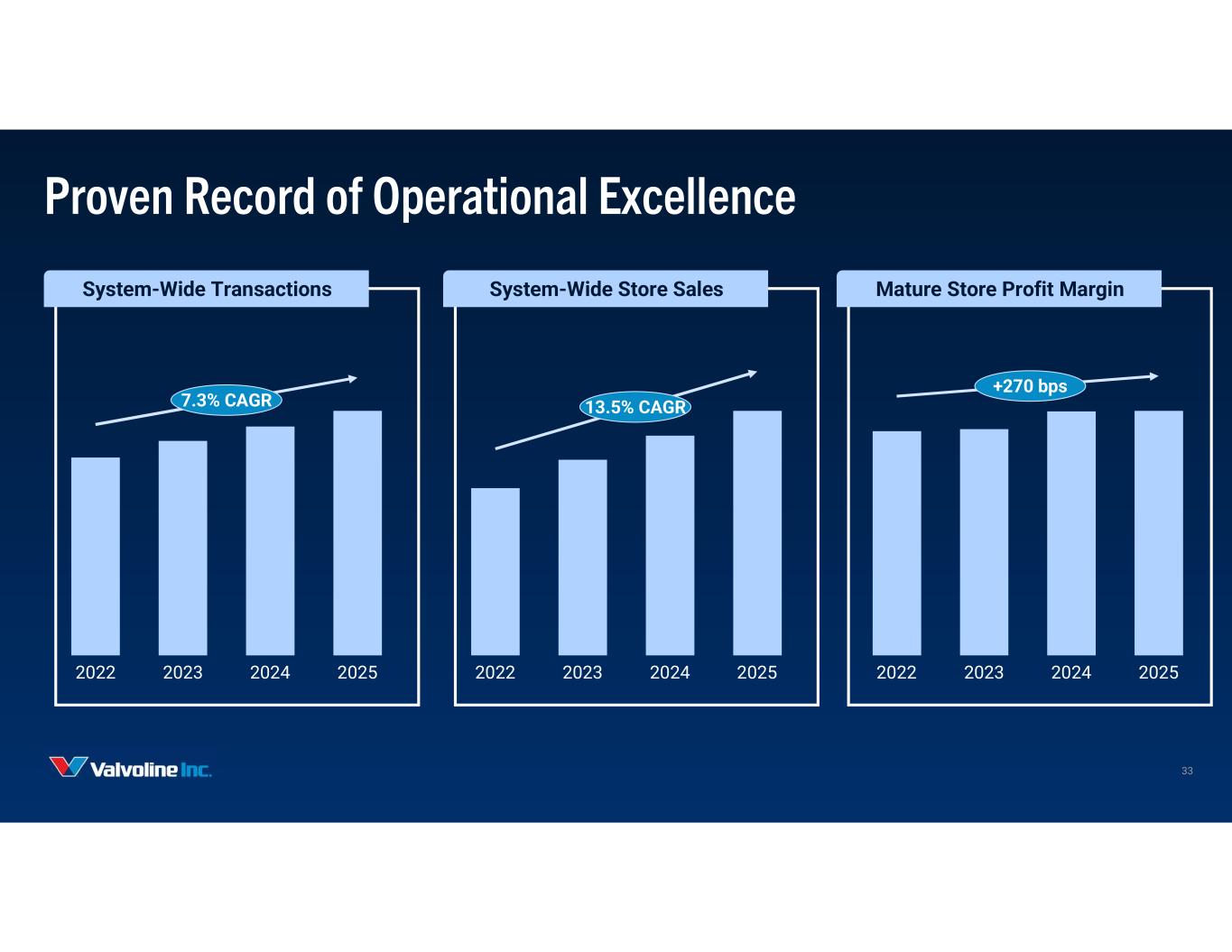 Delivering Against Store Growth Opportunity > 7% New Store Growth 50-60% Additions from Franchisees 73 Valvoline’s System-Wide Store Network 2,365 Dec. 2025 2028 (E) 203X >2,900 ~ 3,500