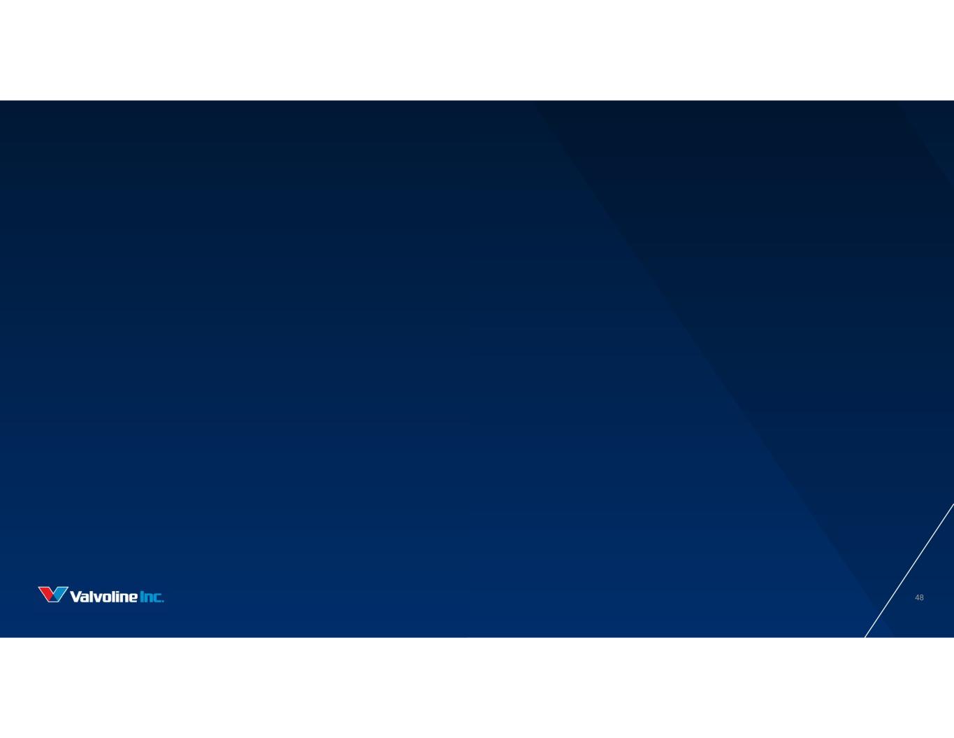 84 Appendix- Slide Notes Slide 16 – In an Attractive Market • Fragmented Market – See 2025 Autocare Factbook. Includes general retail locations and management estimates of Quick Lube market • Age of Car Parc – Average Age of Cars on the Road by Year 2029, Hedges and Company, February 2024 • Full Synthetic Mix – Based on Valvoline oil changes in each year • Prioritizing Convenience- Investing in the Convenience Premium, Morgan Stanley Research, August 26, 2024 Slide 18,19, 21 - Enabled by Differentiated Assets & Capabilities • Brand Awareness - Based on management estimates from 2021 Consumer Survey • Customer Rating – Based on a survey of over 1 million VIOCTM customers annually • Marketable Customer Database – Represents customers who have transacted in the last 12 months plus customers with contact information • Robust Data – Real Estate data points calculated using on >2,000 stores in the network and data points evaluated for each site Slide 25 – Significant Network Expansion Opportunity Remains • Market Share & Geographic Coverage – Based on market data and company estimates Slide 26 & 27 – Innovating to Meet the Evolving Market Needs • Car Parc data – Mobility and Energy Future: US, China, Europe and India- New Mobility Deep Dive, S&P Global, August 2025 Slide 33 – Proven Record of Operational Excellence • Mature Stores – includes stores opened as of 10/1/2020 Slide 34 – Delivering a Consistently High Customer Experience • Service Accuracy – Based on company data for system-wide claims reporting Slide 39 – Data and Technology Powers our Scale Advantages • Real Estate Model Data Points calculated using on >2,000 stores in the network and data points evaluated for each site • . Slide 39 con. – Data and Technology Powers our Scale Advantages • Vehicle Data Requirements – Based on data unique vehicles served at Valvoline and ~140 OEM requirements per vehicle • Competitor Pricing – Based on pricing surveys conducted by company throughout the year Slide 42 – Multi-Year Margin Expansion to Come • Aging of Car Parc – Average Age of Cars on the Road by Year 2029, Hedges and Company, February 2024 • Estimate of Vehicles <2 years old - based on car parc estimates provided by S&P Global Slide 44 – Multi-Year Margin Expansion to Come • G&A Leverage - based on management estimate Slide 52 – Franchisees are Foundational to our Growth • AUV - Based on VIOC US stores and information provided in the company’s Franchise Disclosure Document (FDD) Slide 54 – Franchisor of Choice Delivering Best-in-Class Results • AUV vs. Industry - Based on management calculations using the 2025 Autocare Factbook and industry growth estimates • Franchise Customer Rating – based on post-service NPS scores Slide 55, 56, 57, 58 – Established Partner Profile • Established Franchise Partners include largest four franchise systems based on store count Slide 59 – Refranchising with Purpose • Includes information related to significant refranchising transactions between Q4FY2024 and Q1FY2025