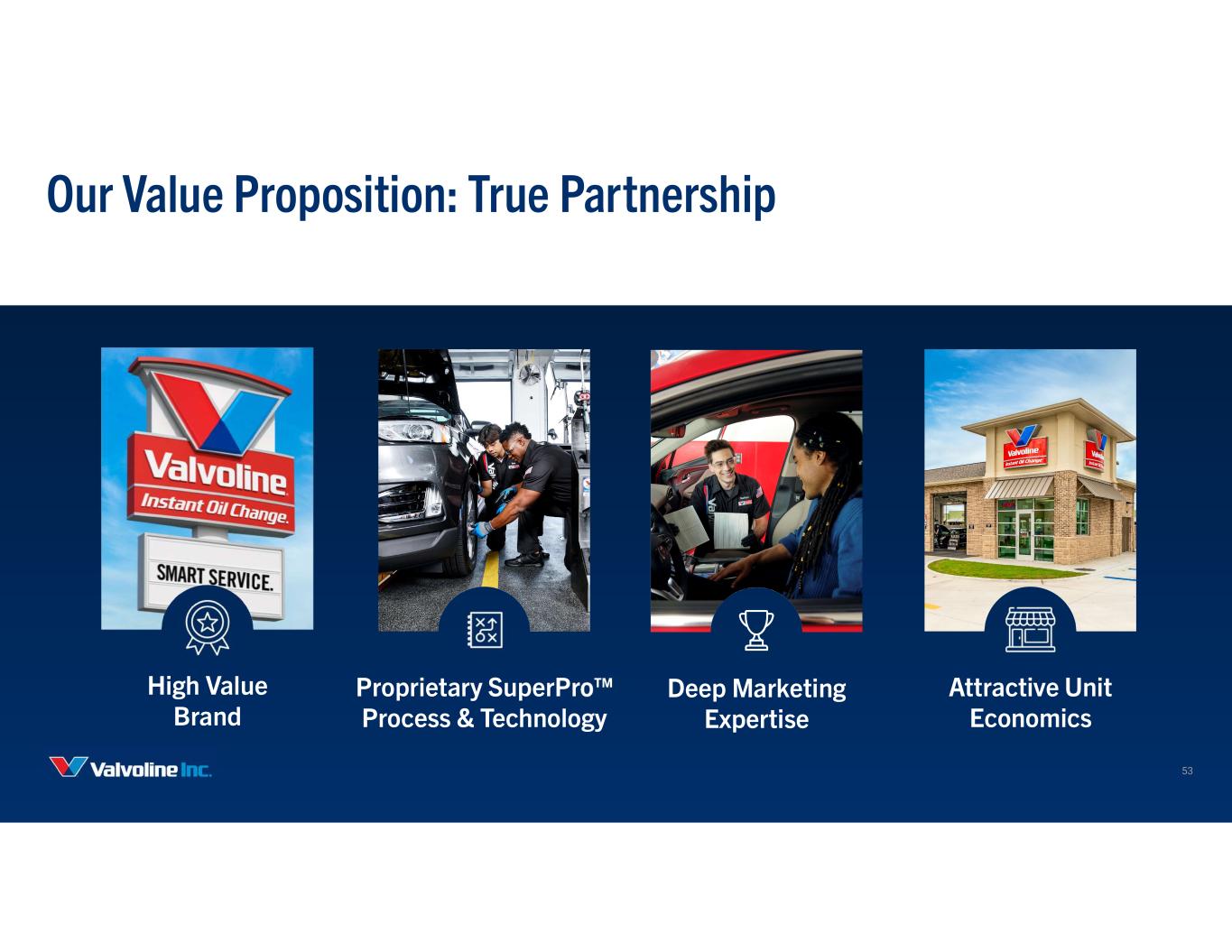 Franchisees are Foundational to our Growth 52 VIOCSM Franchisees have the highest AUV in the Quick Lube Industry $1.5M $1.8M 2022 2023 2024 2025 Valvoline’s Average Unit Volume (AUV) Company Franchise