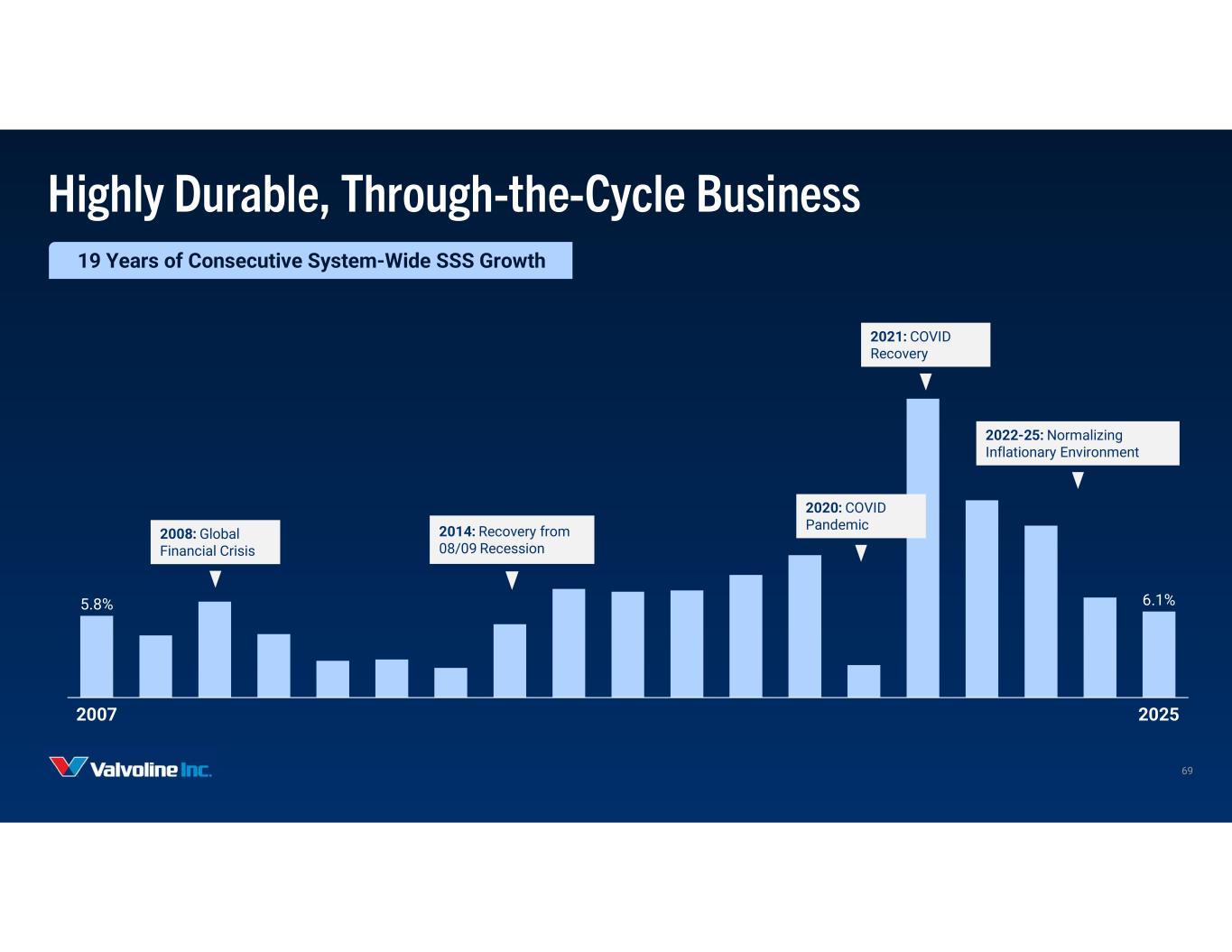 Highly Durable, Through-the-Cycle Business 2007 2025 5.8% 6.1% 2008: Global Financial Crisis 2020: COVID Pandemic 2021: COVID Recovery 2022-25: Normalizing Inflationary Environment 2014: Recovery from 08/09 Recession 19 Years of Consecutive System-Wide SSS Growth 69