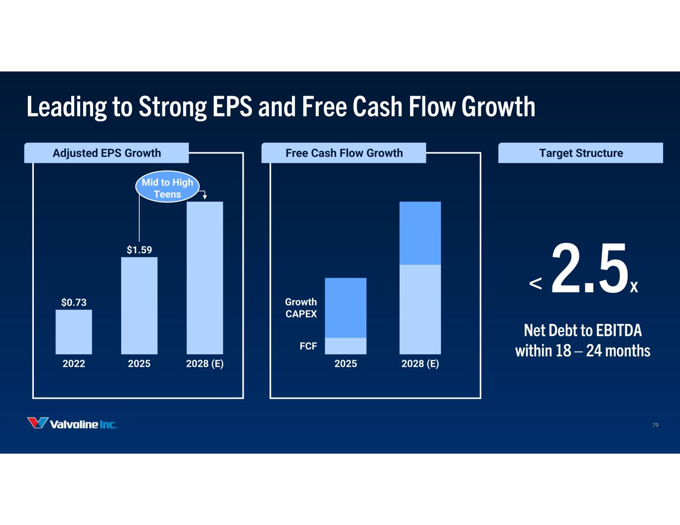 85 Appendix- Slide Notes Slide 61 – Our Franchisees Earn Strong Returns • Consumer Services and Retail dataset includes Sport Clips, Lash Lounge, ScentHound, and Pet Supplies Plus, while the QSR dataset includes Dunkin, Buffalo Wild Wings, Wendy's, Dominos, and McDonald’s; All sourced from VettedBiz.com • Four-wall EBITDA refers to the specific earnings of a single service center location before general corporate overhead, rent/property taxes, and other non-store-level expenses • Cash on cash returns refer to specific pre-tax earnings of a single service center location in proportion to the initial investment on the service center Slide 68 – A High-Performance Growth Engine • Net Sales Growth, Adj. EBITDA Growth, and Adj. EPS Growth based on compounded annual growth rate Slide 71 – Valvoline’s Medium Term Financial Growth Model • Target Leverage Ratio based on total debt less cash and cash equivalents divided by adjusted EBITDA Slide 73 – Delivering Against Store Growth Opportunity • Net Store Growth and Franchise Additions estimated for the fiscal year 2026 – fiscal year 2028 Slide 75 – Capital Allocation Commitments • Target Leverage Ratio based on total debt less cash and cash equivalents divided by adjusted EBITDA Slide 76 – Store Build Cost Efficiencies to Improve Return Profile • ROIC defined as net-operating profit after tax divided by the initial investment for store builds Slide 77 – Valvoline has a Strong Track Record of Accretive Acquisitions • Case based on sample of multiple multi-unit acquisitions from 2021 • . Slide 78 – We Will Deliver Value from the Breeze Acquisition • Note FY2026 includes 10 months of Operations and Y1 includes a full 12 months of Operations Slide 79 – Leading to Strong EPS and Free Cash Flow Growth • Free cash flow is defined as operating cash flows less additions to property, plant and equipment • .