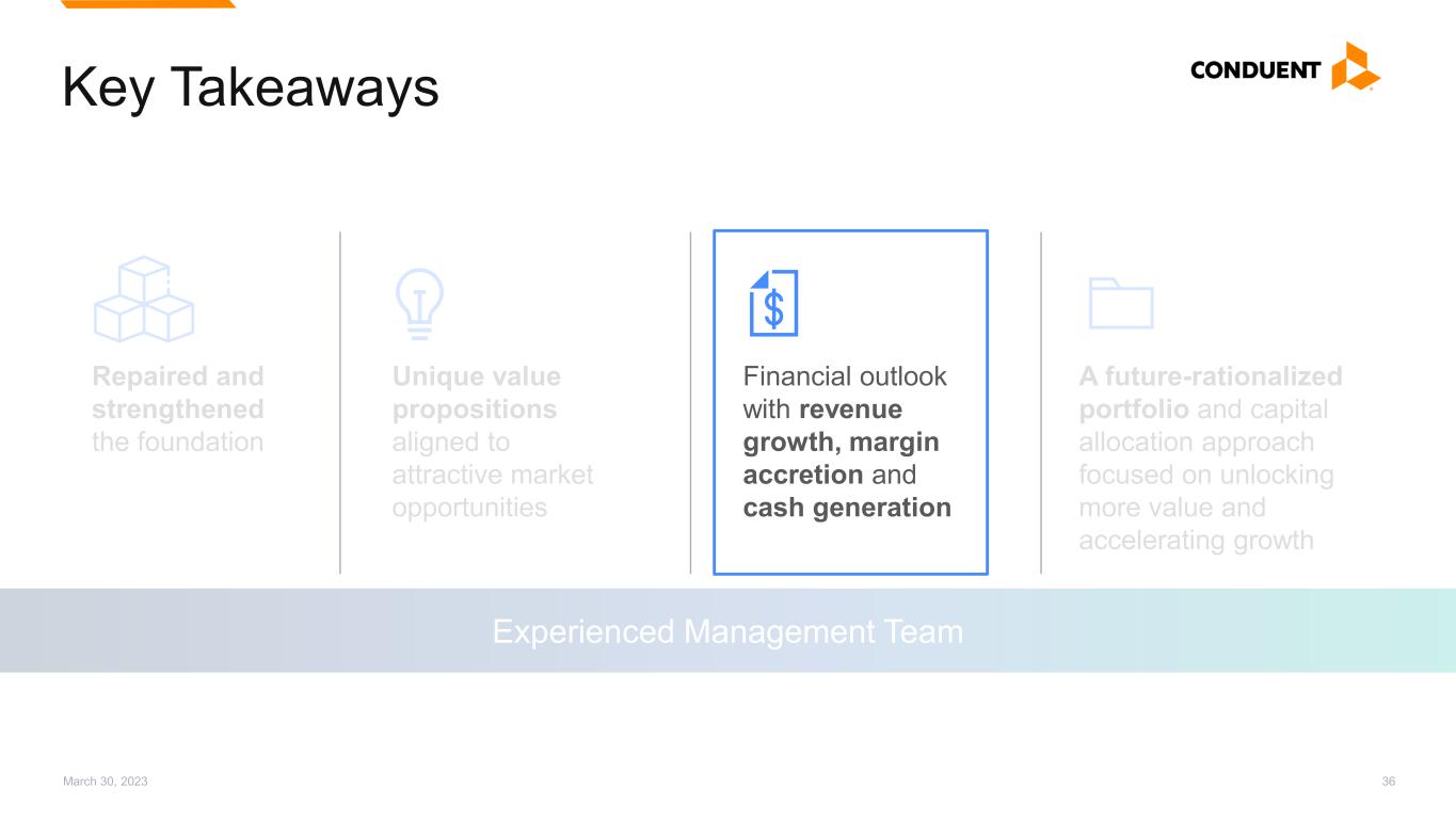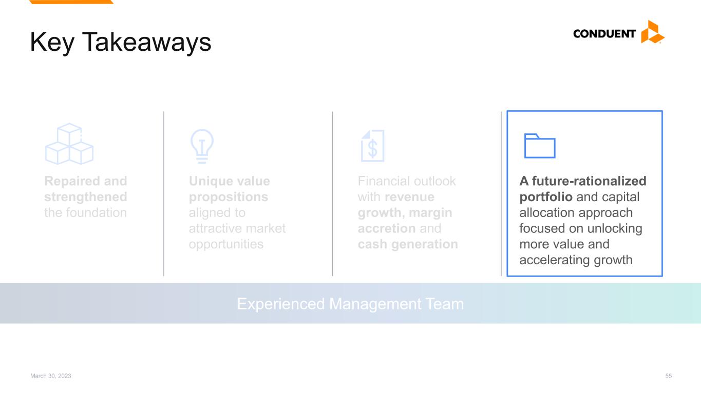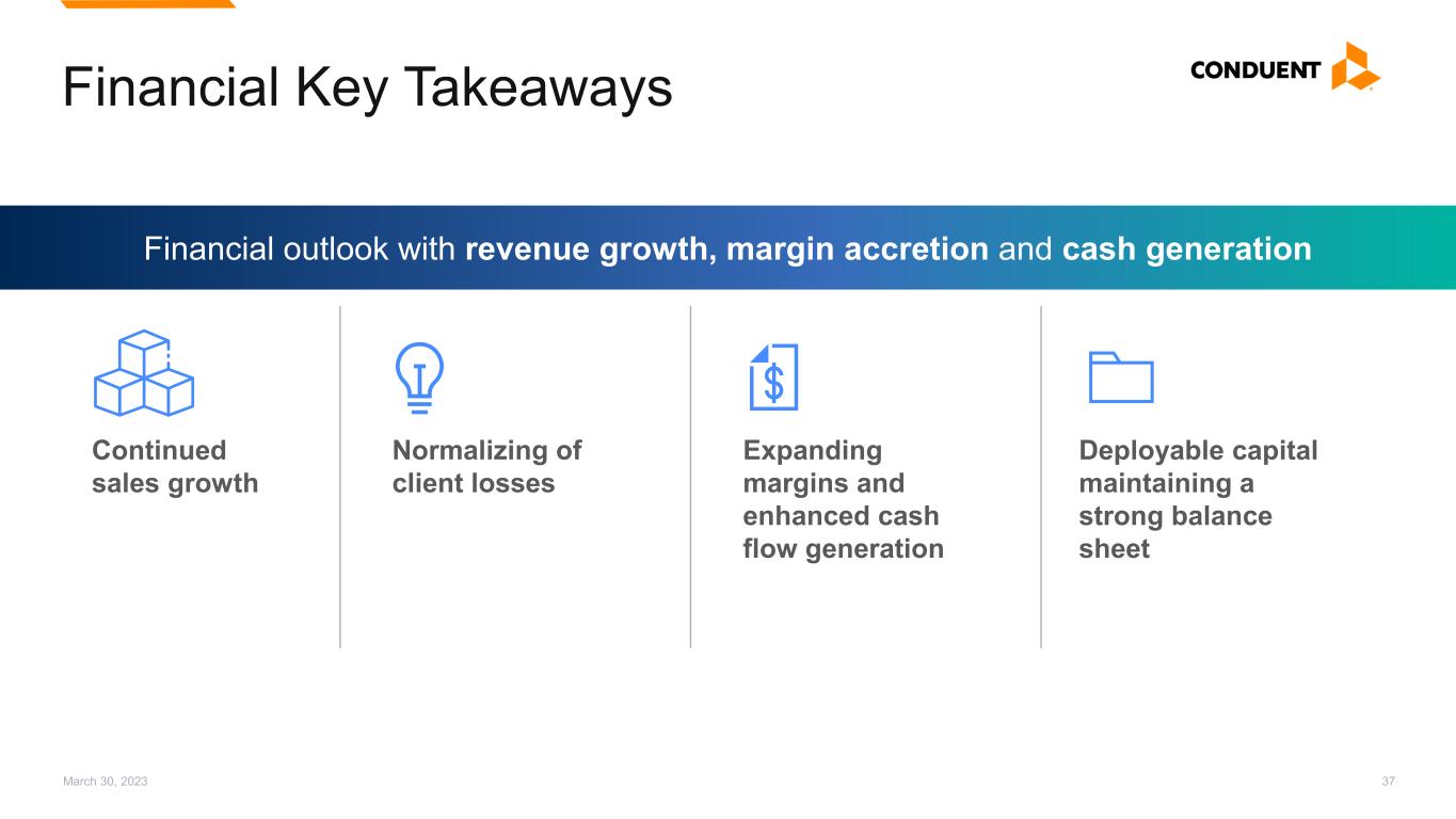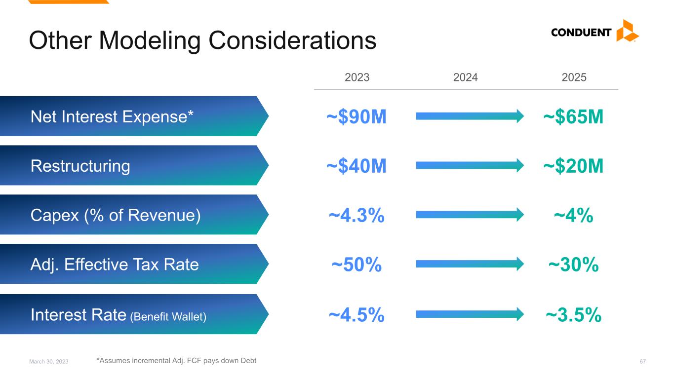 Thank you for joining us. The webcast replay and presentation material will be available at: www.conduent.com/investorbriefing2023 64