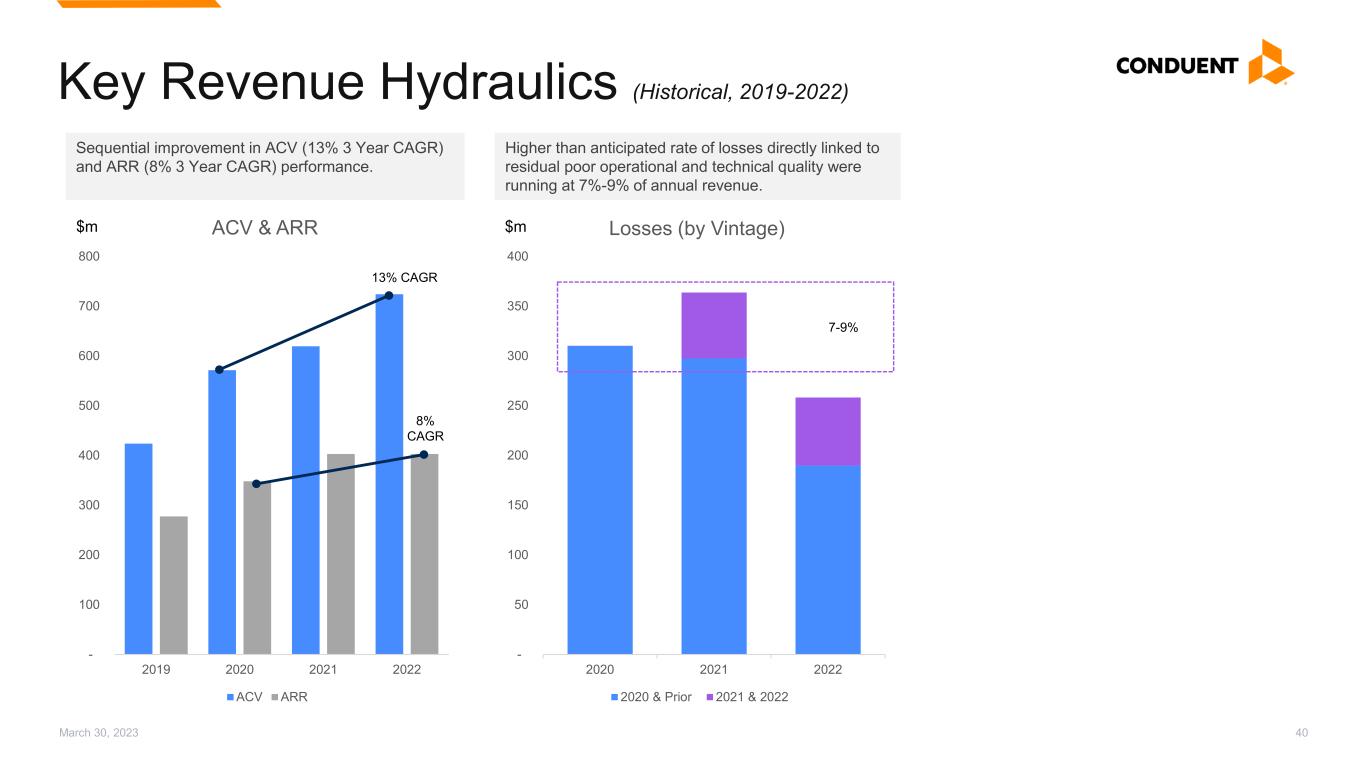 39 Key Revenue Hydraulics (Historical, 2019-2022) - 100 200 300 400 500 600 700 800 2019 2020 2021 2022 ACV & ARR ACV ARR Sequential improvement in ACV (13% 3-Year CAGR) and ARR (8% 3-Year CAGR) performance. 13% CAGR 8% CAGR $m March 30, 2023