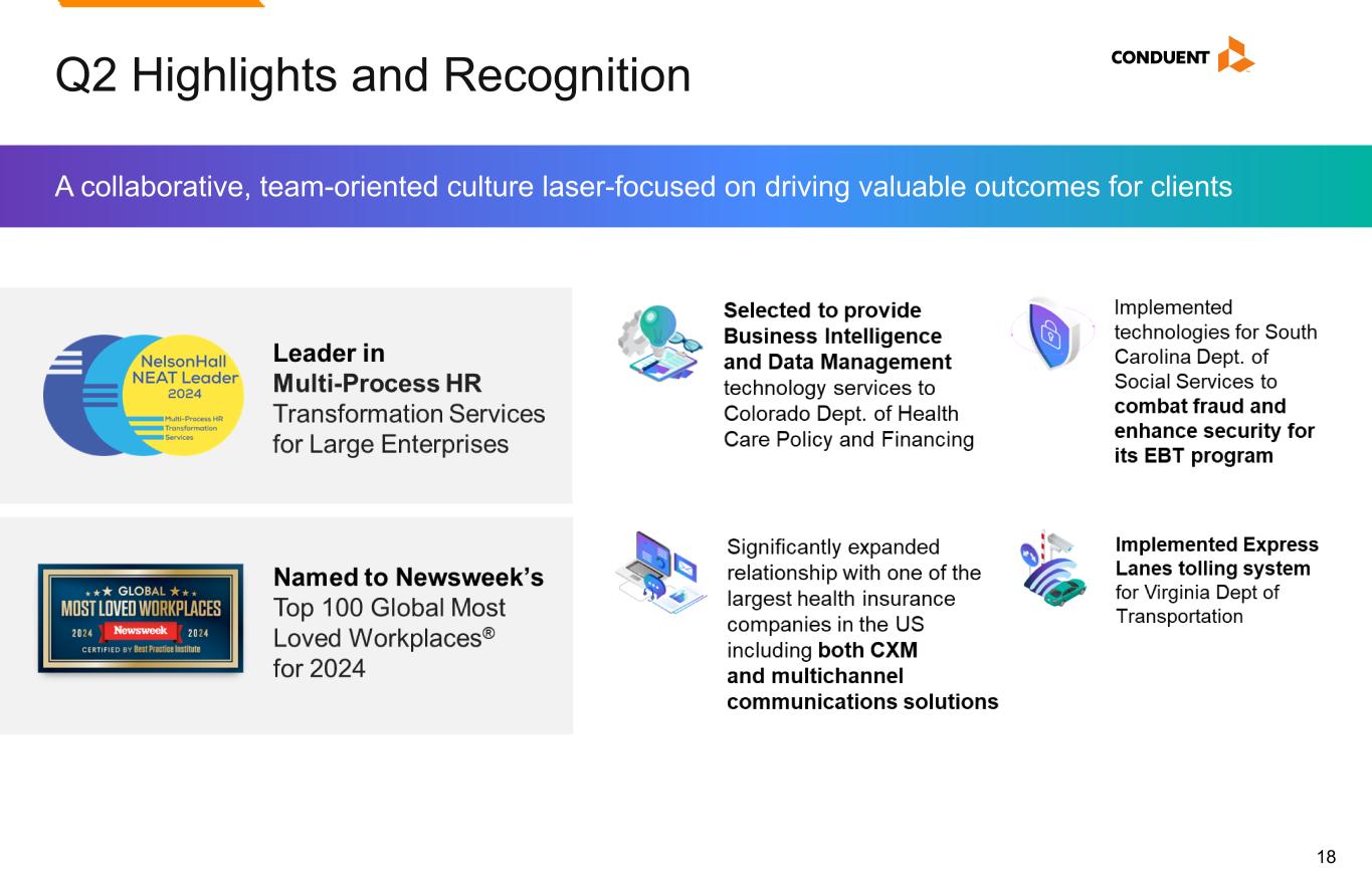 18 Q2 Highlights and Recognition A collaborative, team-oriented culture laser-focused on driving valuable outcomes for clients