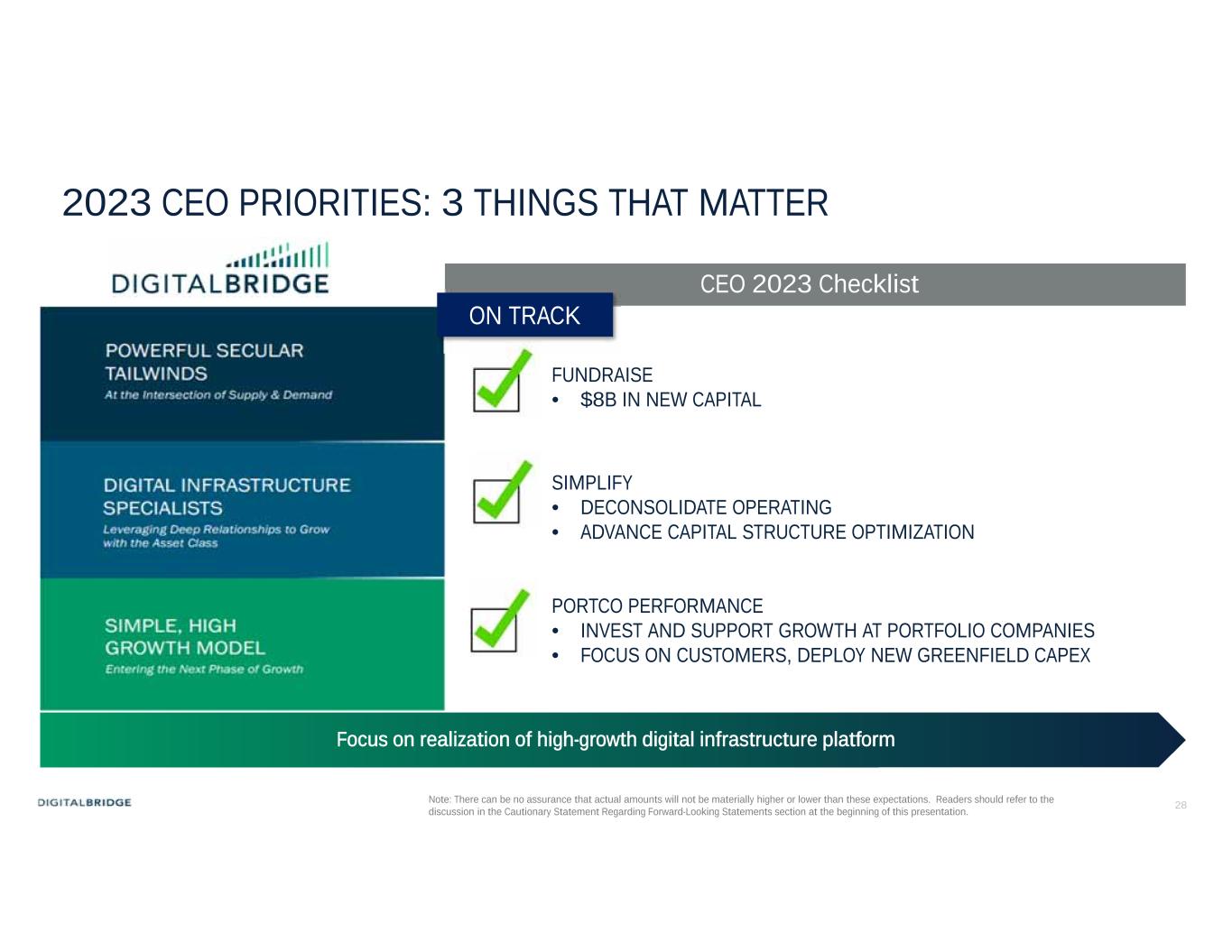 28 2023 CEO PRIORITIES: 3 THINGS THAT MATTER CEO 2023 Checklist Secular Tailwinds Around Connectivity – Big Growing TAM The Leading Management Team 25+ years Investing and Operating Digital Assets Converged Vision with Exposure to Entire Digital Ecosystem Focus on realization of high-growth digital infrastructure platform FUNDRAISE • $8B IN NEW CAPITAL SIMPLIFY • DECONSOLIDATE OPERATING • ADVANCE CAPITAL STRUCTURE OPTIMIZATION PORTCO PERFORMANCE • INVEST AND SUPPORT GROWTH AT PORTFOLIO COMPANIES • FOCUS ON CUSTOMERS, DEPLOY NEW GREENFIELD CAPEX ON TRACK Note: There can be no assurance that actual amounts will not be materially higher or lower than these expectations. Readers should refer to the discussion in the Cautionary Statement Regarding Forward-Looking Statements section at the beginning of this presentation.