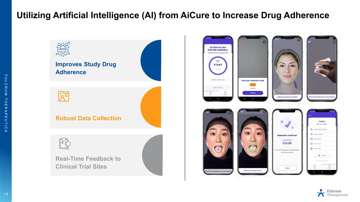FULCRUM THERAPEUTICS Utilizing Artificial Intelligence (AI) from AiCure to Increase Drug Adherence Improves Study Drug Adherence Robust Data Collection Real-Time Feedback to Clinical Trial Sites 19