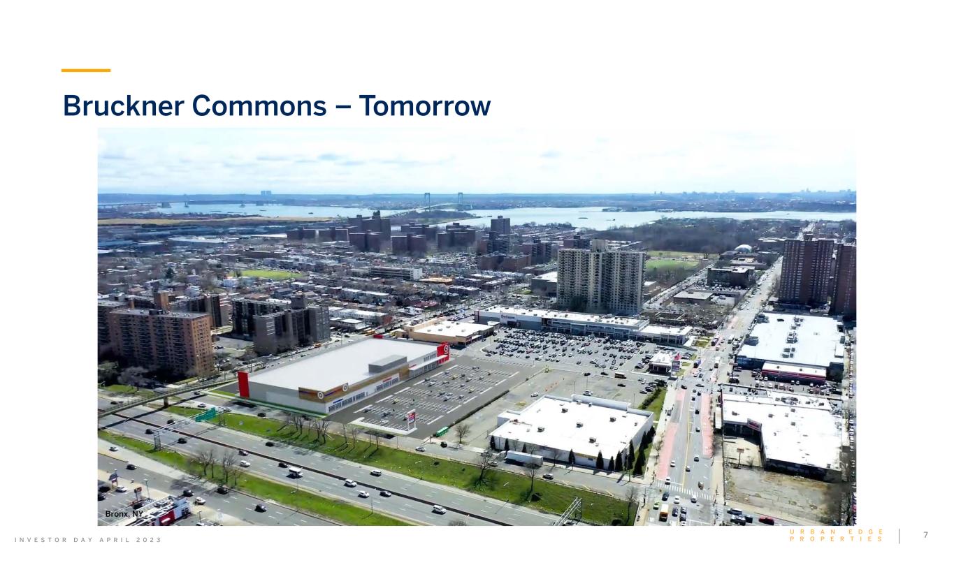 I N V E S T O R P R E S E N T A T I O N 6I N V E S T O R D A Y A P R I L 2 0 2 3 U R B A N E D G E P R O P E R T I E S Bruckner Commons – Today Bronx, NY