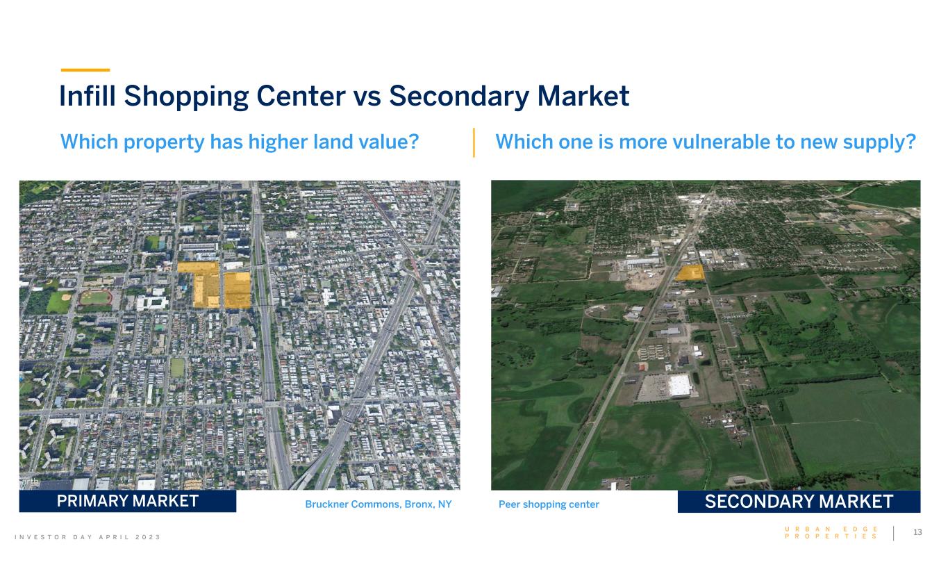 I N V E S T O R D A Y A P R I L 2 0 2 3 U R B A N E D G E P R O P E R T I E S 13 SECONDARY MARKETPRIMARY MARKET Infill Shopping Center vs Secondary Market Which property has higher land value? Which one is more vulnerable to new supply? Bruckner Commons, Bronx, NY Peer shopping center