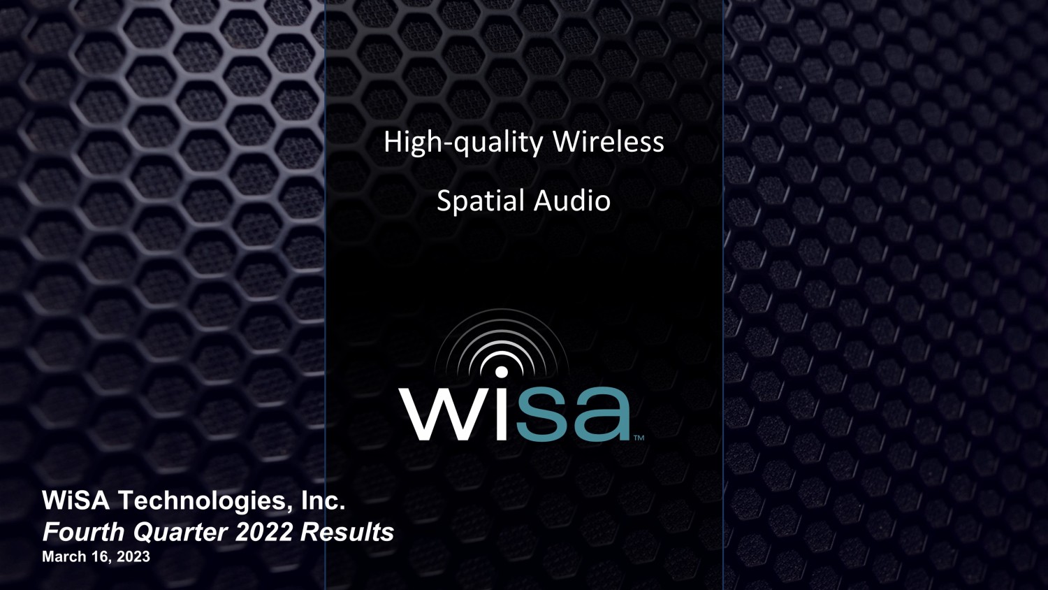 High - quality Wireless Spatial Audio WiSA Technologies, Inc. Fourth Quarter 2022 Results March 16, 2023