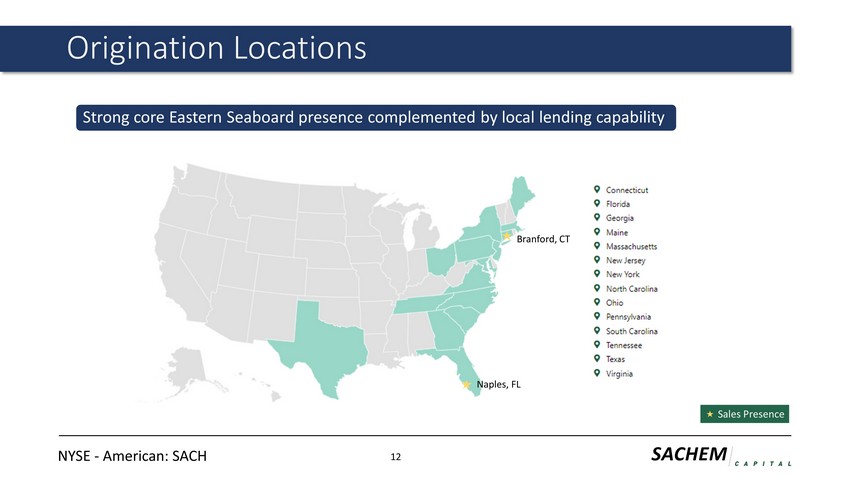 NYSE - American: SACH Origination Locations 12 Strong core Eastern Seaboard presence complemented by local lending capability Naples, FL Branford, CT