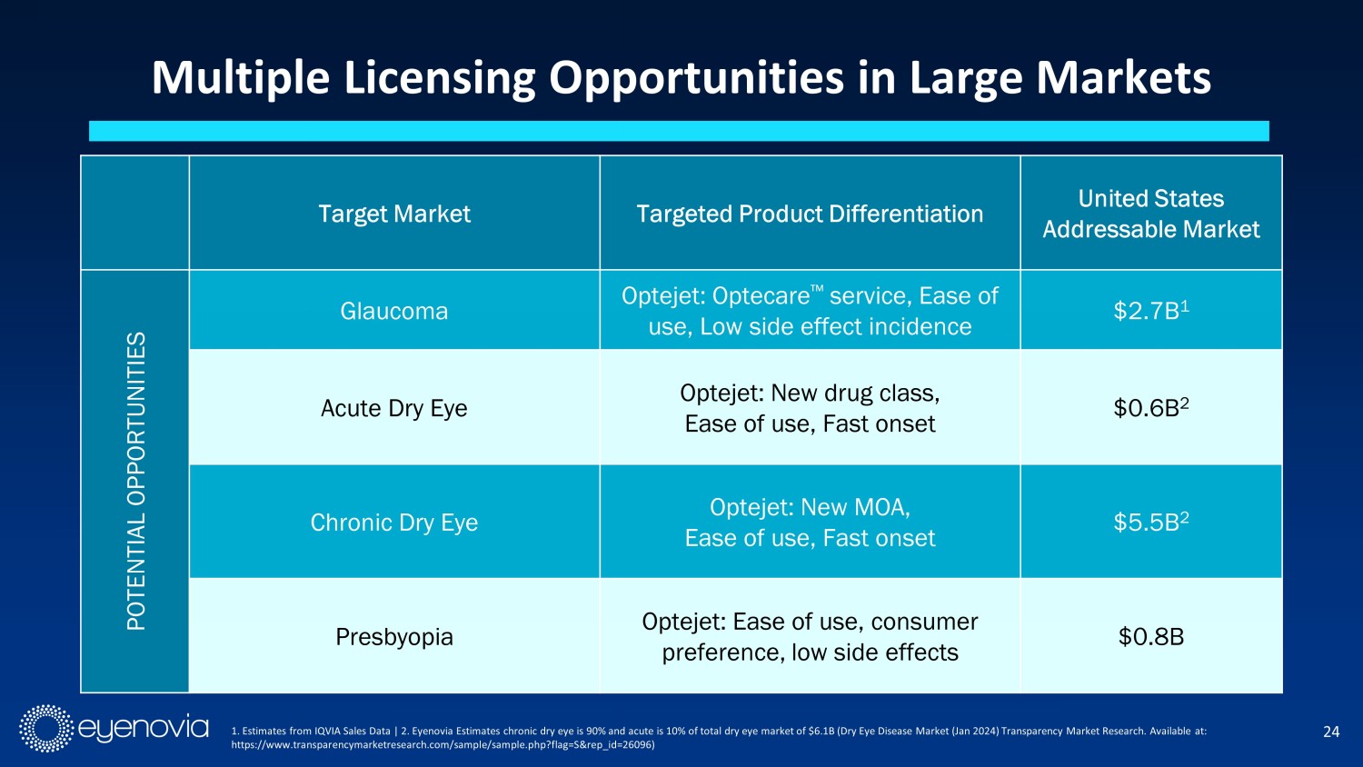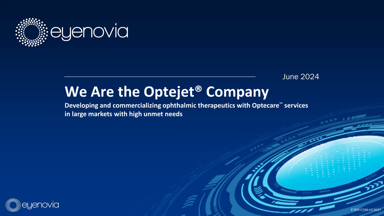June 2024 We Are the Optejet® Company Developing and commercializing ophthalmic therapeutics with Optecare Ρ services in large markets with high unmet needs EYEN - COM - V2 - 0021