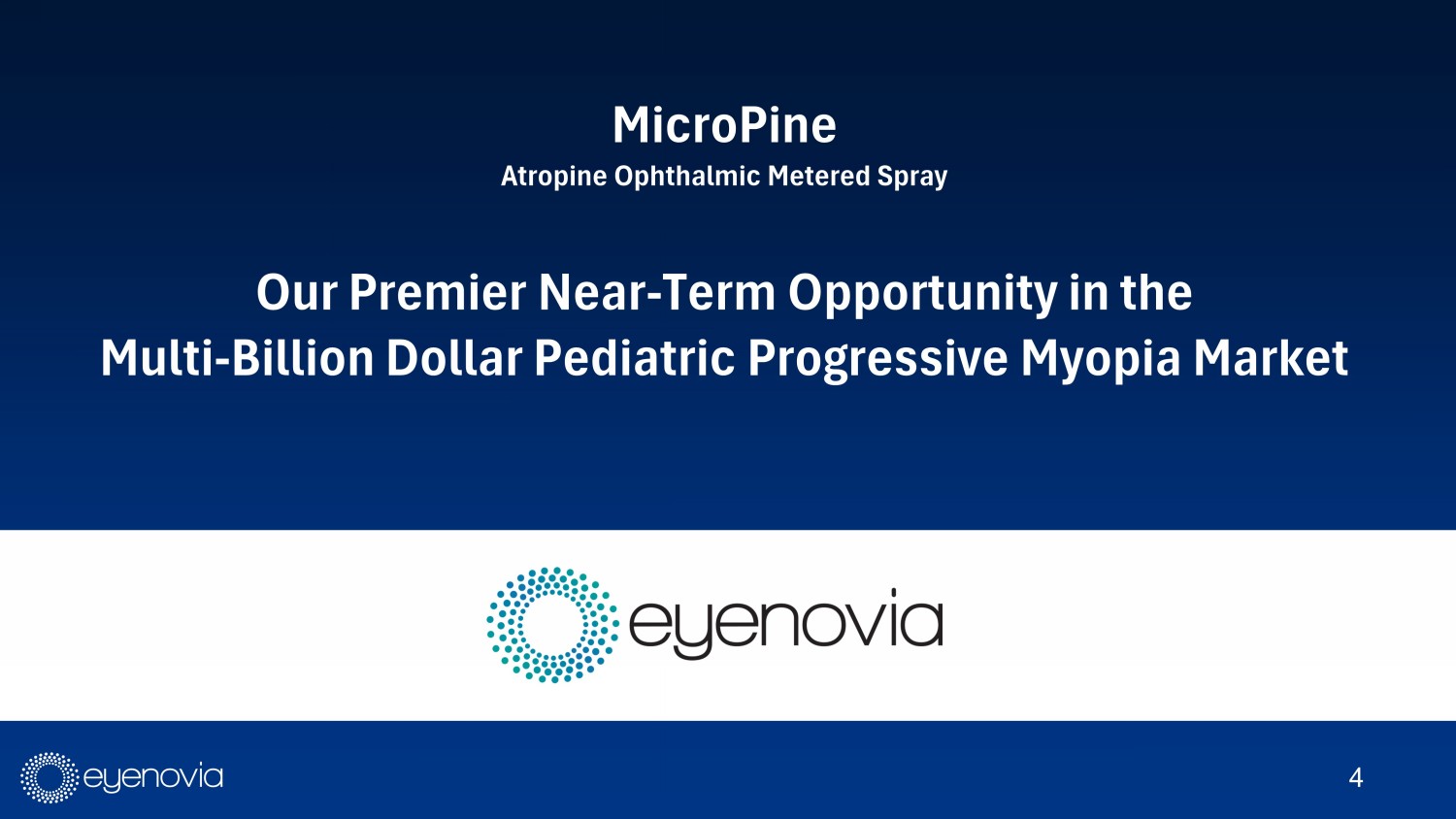 MicroPine Atropine Ophthalmic Metered Spray Our Premier Near - Term Opportunity in the Multi - Billion Dollar Pediatric Progressive Myopia Market 4
