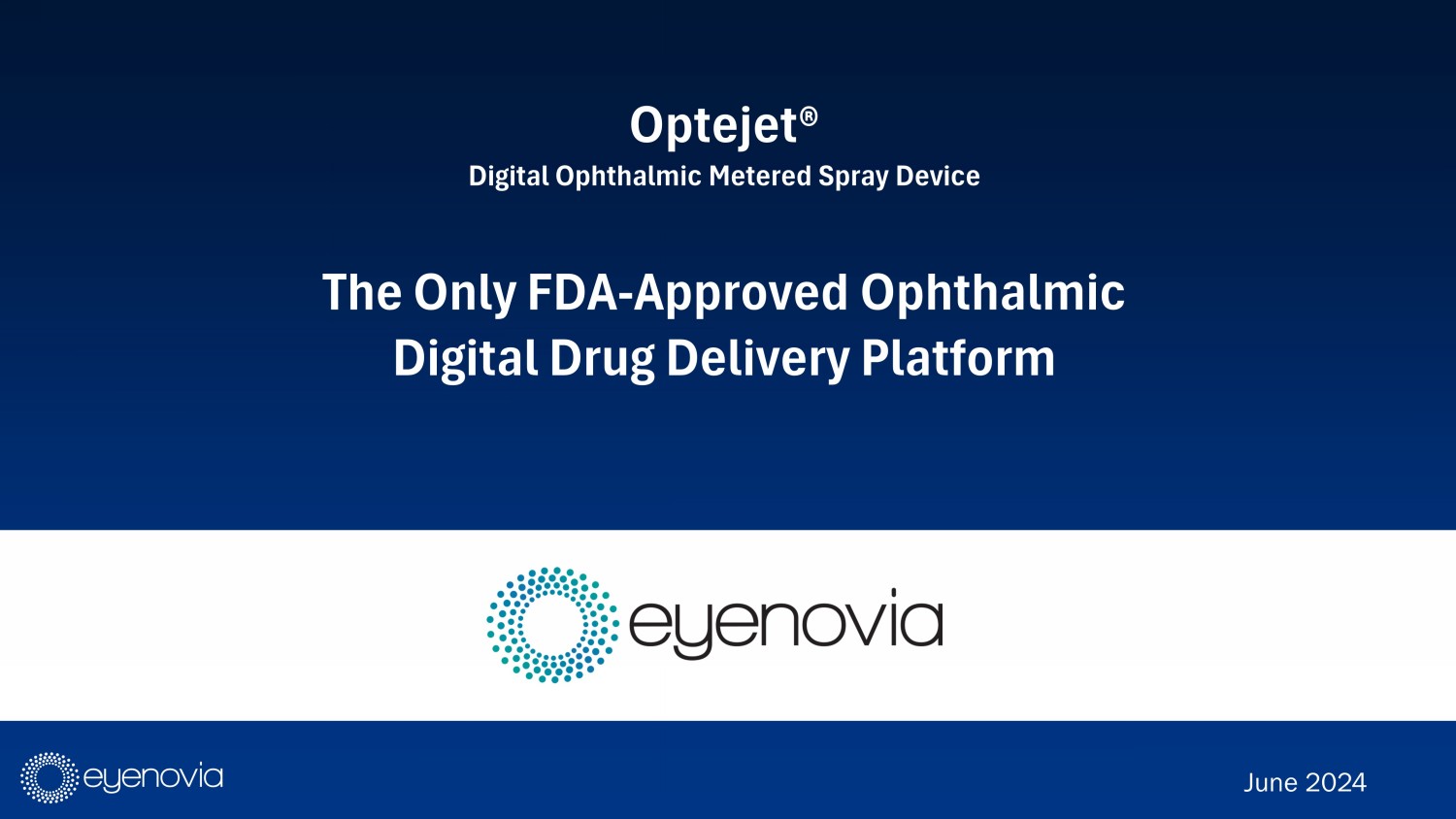 Optejet® Digital Ophthalmic Metered Spray Device The Only FDA - Approved Ophthalmic Digital Drug Delivery Platform June 2024