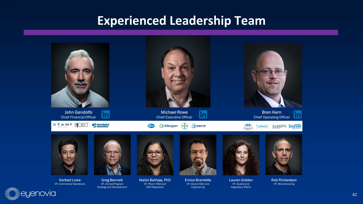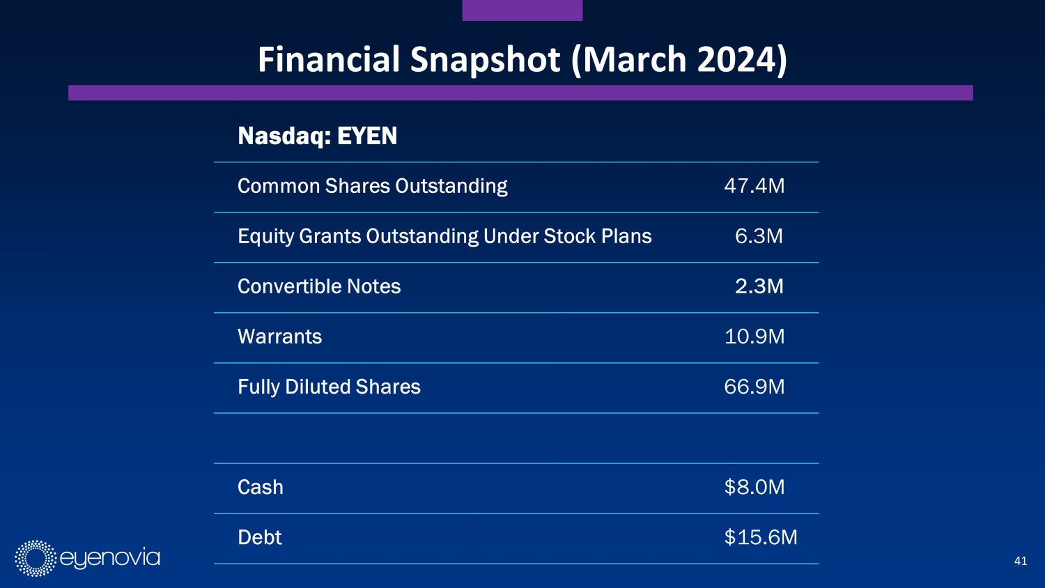 41 Financial Snapshot (March 2024) Nasdaq: EYEN Common Shares Outstanding 47.4M Equity Grants Outstanding Under Stock Plans 6.3M Convertible Notes 2.3M Warrants 10.9M Fully Diluted Shares 66.9M Cash $8.0M Debt $15.6M