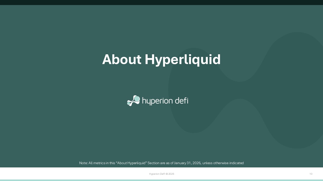 Hyperion DeFi © 2026 10 About Hyperliquid Note: All metrics in this “About Hyperliquid” Section are as of January 31, 2026, unless otherwise indicated
