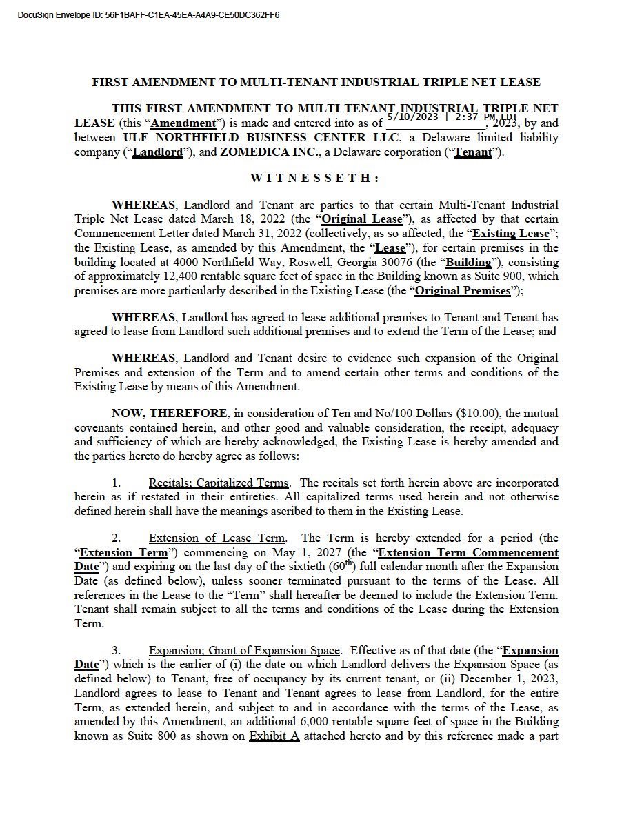 EX-10.1 2 zom_ex101.htm FIRST AMENDMENT TO MULTI-TENANT INDUSTRIAL TRIPLE NET LEASE zom_ex101.htm