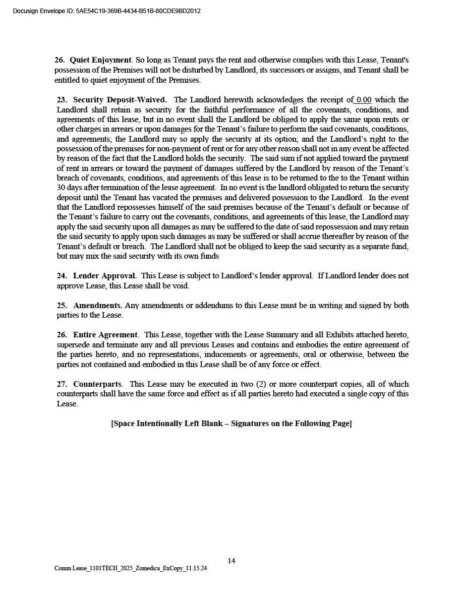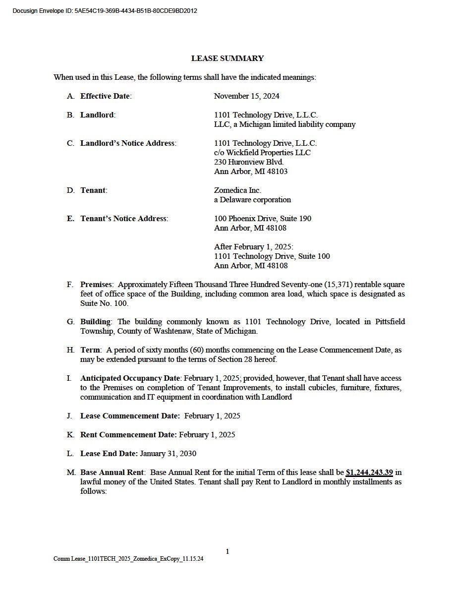 EX-10.1 2 zom_ex101.htm LEASE AGREEMENT zom_ex101.htm