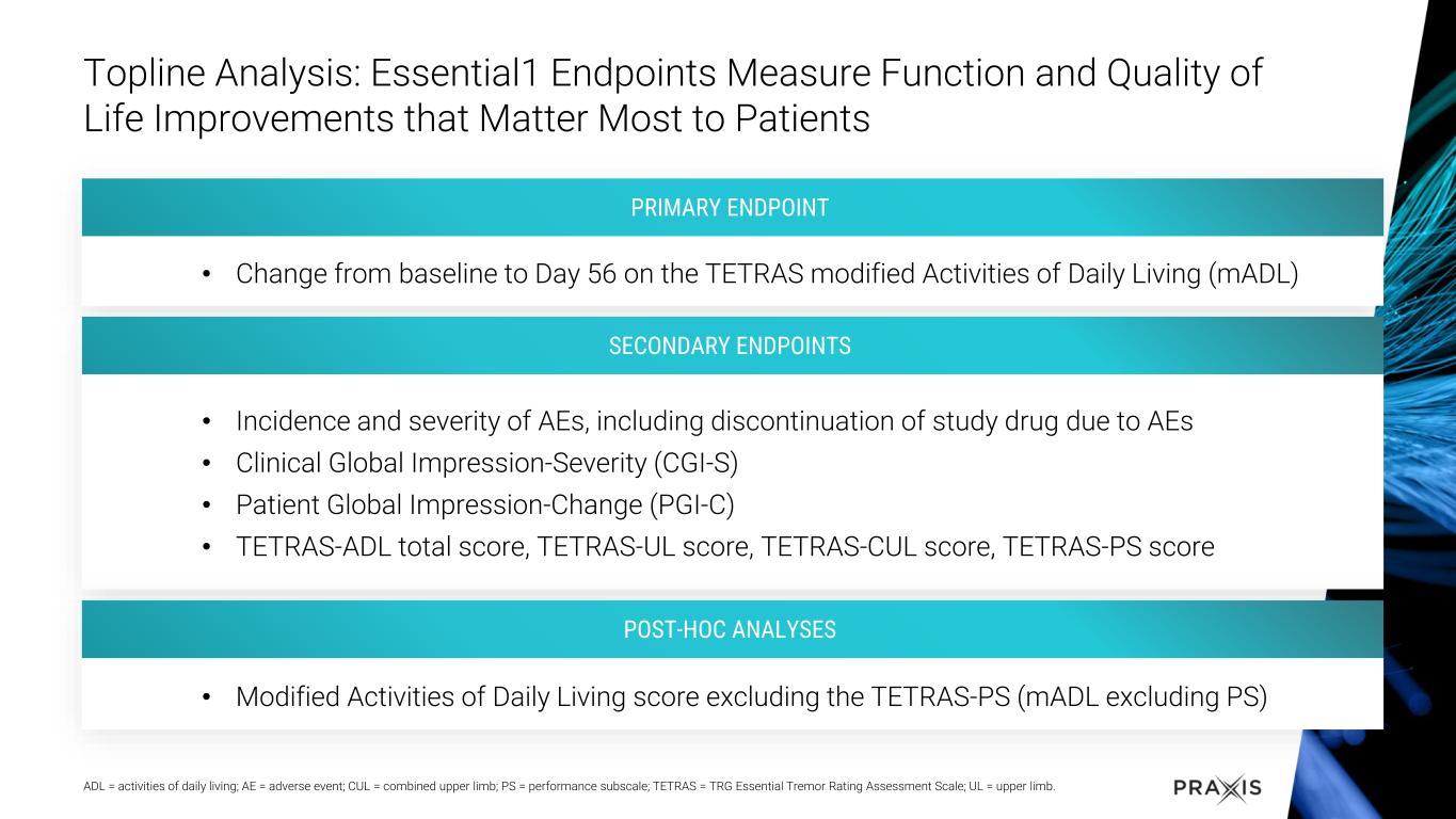 ULIXACALTAMIDE (PRAX-944) ESSENTIAL1 ESSENTIAL TREMOR TOPLINE RESULTS March 2023