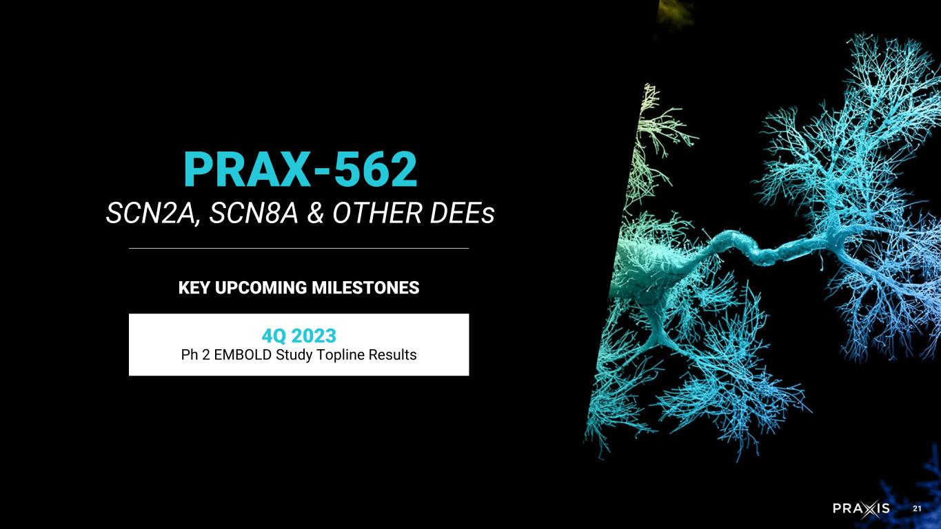 21 PRAX-562 SCN2A, SCN8A & OTHER DEEs KEY UPCOMING MILESTONES 4Q 2023 Ph 2 EMBOLD Study Topline Results