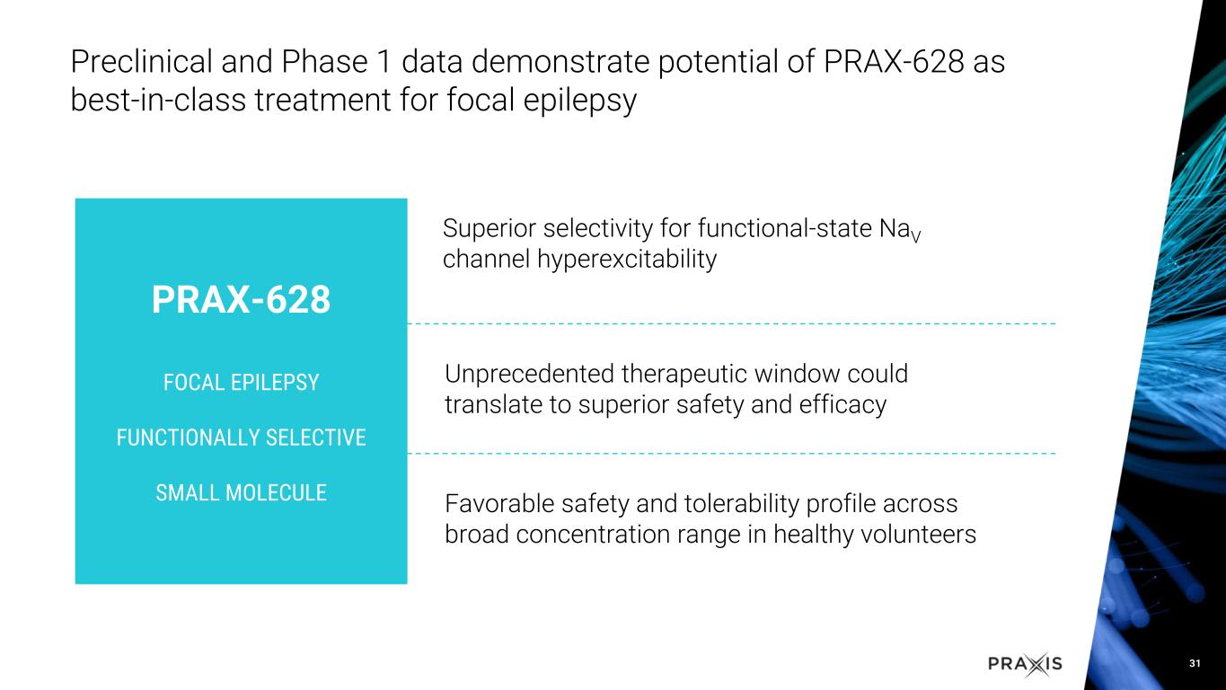 31 Preclinical and Phase 1 data demonstrate potential of PRAX-628 as best-in-class treatment for focal epilepsy Superior selectivity for functional-state NaV channel hyperexcitability Favorable safety and tolerability profile across broad concentration range in healthy volunteers Unprecedented therapeutic window could translate to superior safety and efficacy PRAX-628 FOCAL EPILEPSY FUNCTIONALLY SELECTIVE SMALL MOLECULE