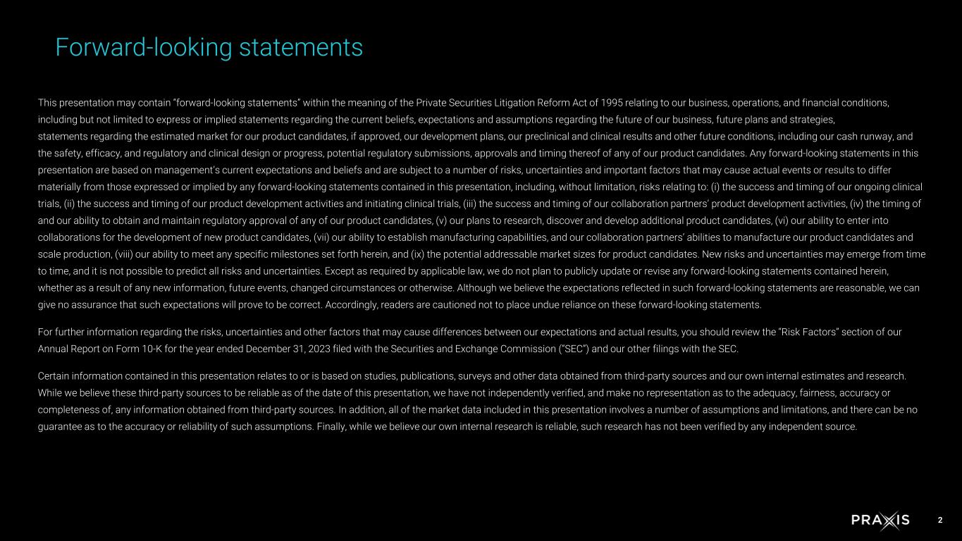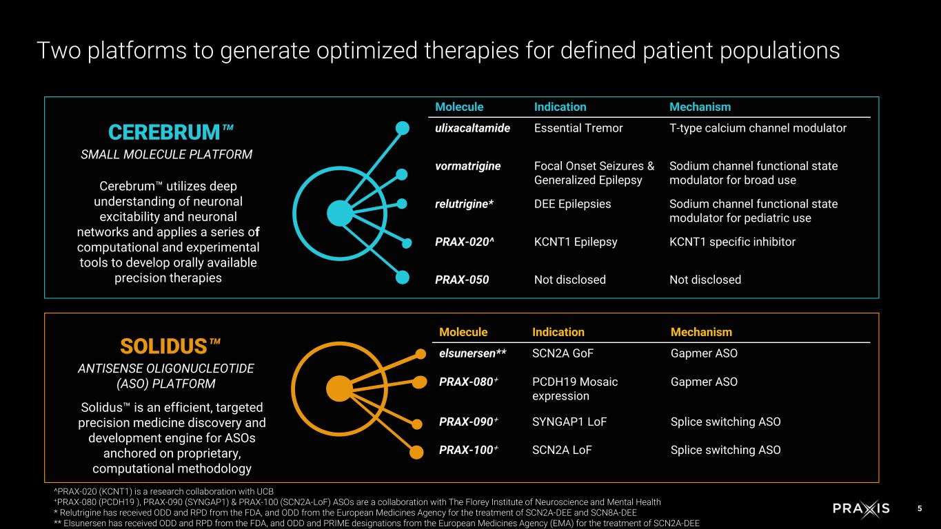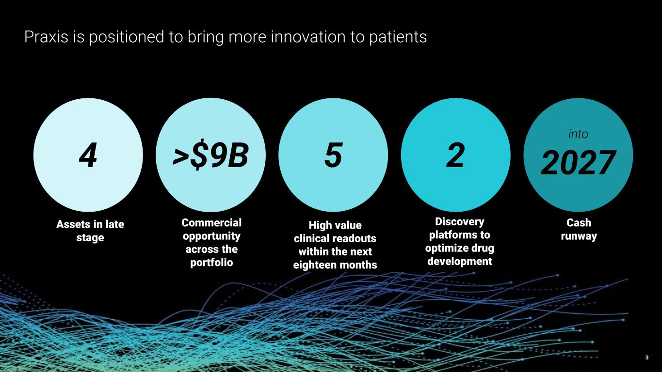 3 4 >$9B 5 2 2027 Praxis is positioned to bring more innovation to patients Assets in late stage Commercial opportunity across the portfolio High value clinical readouts within the next eighteen months Discovery platforms to optimize drug development Cash runway into