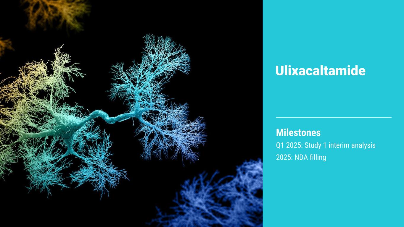 8 Ulixacaltamide Milestones Q1 2025: Study 1 interim analysis 2025: NDA filling
