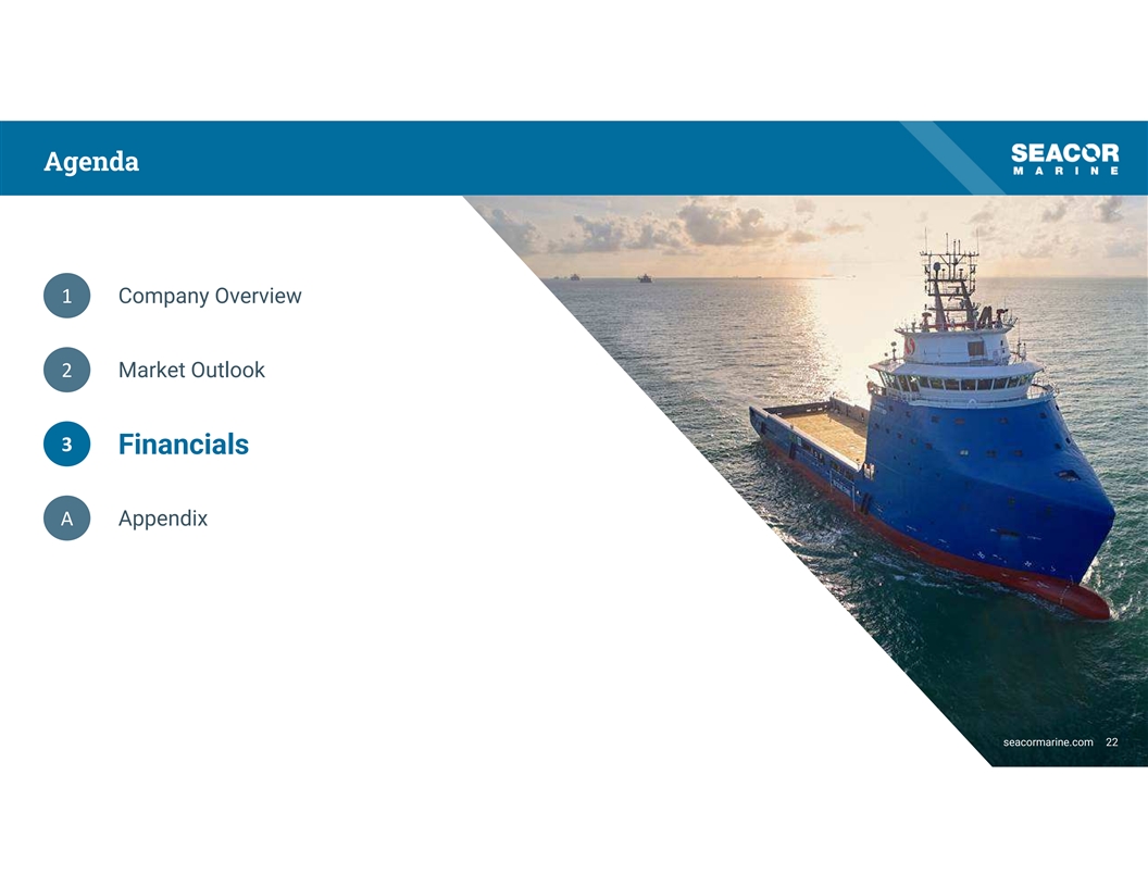 Agenda 1 Company Overview 2 Market Outlook 3 Financials A Appendix seacormarine.com 22