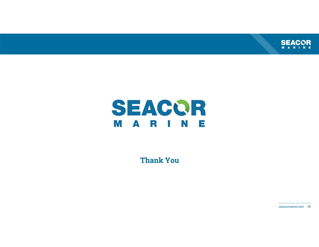 Illustrative Cash Flow Bridge The following does not represent SMHI’s guidance or projections for potential results for 2023 or any other period and should not be relied on as such. Actual financial results with respect to 2023 may materially differ from prior periods and the information set forth below. Annualized Pro-Forma Cash Flow Generation Based on March 2023 Average Day Rates & Utilization $300M $286M Assumptions $33M • Revenue: based on March 2023 Average $250M Fleet Day Rate and Average Fleet Utilization • Drydock & Repairs: based on the average of $200M $122M the past three fiscal years • Other Operating Expenses: based on FY $150M 2022 actuals $131M • SG&A & Lease Expenses: based on FY 2022 $45M $100M actuals $86M $75M $11M • Cash Taxes: approx. $2.8M per quarter $32M $50M • Capex: no meaningful capex commitments $20M $23M going forward $0M (1) Revenue Repairs & Other DVP SG&A and EBITDA Cash Taxes Cash Flow PF PF Free Cash Drydocking Operating Lease available for Interest Amortization Flow after Expenses Expenses Expenses Debt Service Expenses Debt Service (1) Direct Vessel Profit is a non-GAAP financial measure. See Slide 2 for a discussion of Direct Vessel Profit. For reconciliation of Direct Vessel Profit to GAAP Operating Income (Loss), its most comparable GAAP measure, see the seacormarine.com 27 appendix to this presentation.