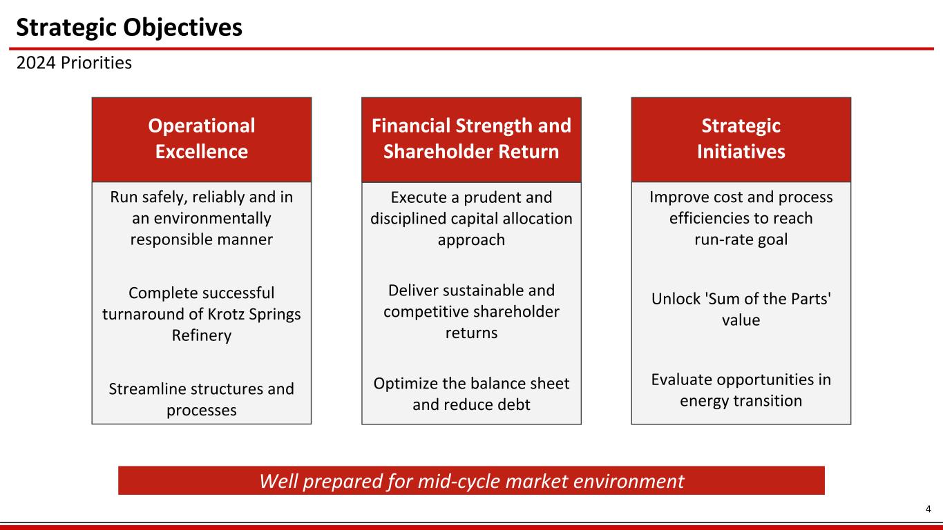 Well prepared for mid-cycle market environment Strategic Objectives 2024 Priorities Run safely, reliably and in an environmentally responsible manner Complete successful turnaround of Krotz Springs Refinery Streamline structures and processes Execute a prudent and disciplined capital allocation approach Deliver sustainable and competitive shareholder returns Optimize the balance sheet and reduce debt Improve cost and process efficiencies to reach run-rate goal Unlock 'Sum of the Parts' value Evaluate opportunities in energy transition Financial Strength and Shareholder Return Operational Excellence Strategic Initiatives 4