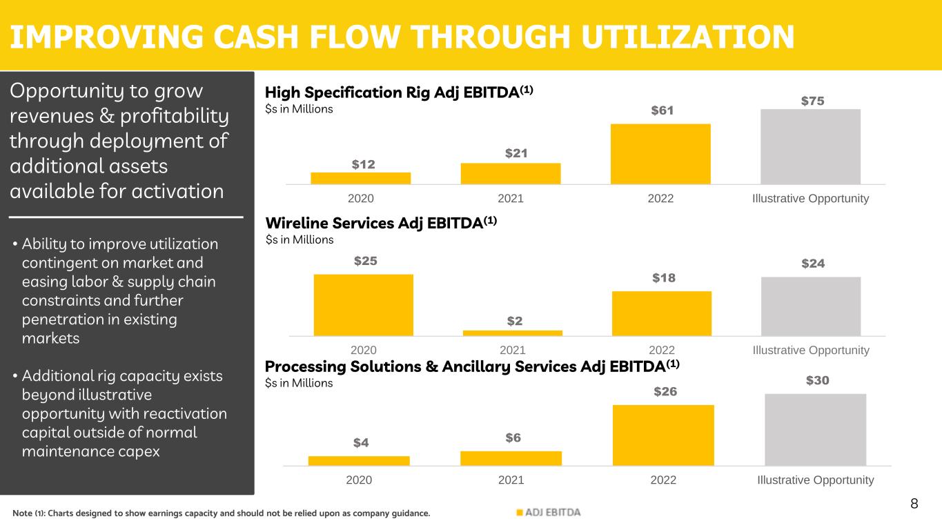 Ranger’s commitment to maximizing shareholder value is focused on improving free cash flow through asset utilization, fortifying the balance sheet, returning capital to shareholders and growing through acquisition. V A L U E C R E A T IO N F R A M E W O R K IMPROVING FREE CASH FLOW GENERATION FORTIFYING THE BALANCE SHEET ATTRACTIVE CAPITAL RETURNS FRAMEWORK GROWTH THROUGH ACQUISITION 7