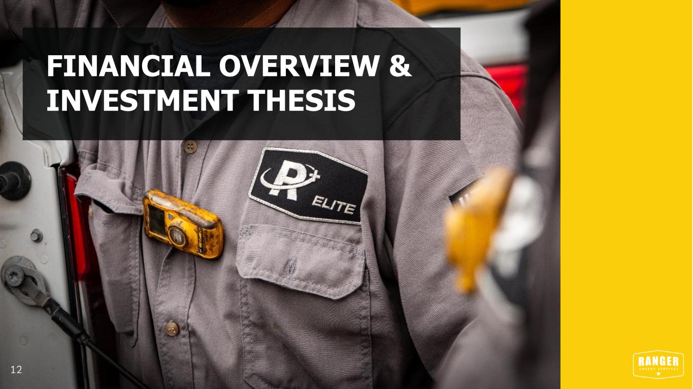 EXPLORING GROWTH THROUGH ACQUISITION 11 Intentional and selective approach to acquisitions with clear objective of value creation through inorganic growth • Successful track record of executing accretive M&A • Fragmented and competitive industry provides opportunity for value-creation • Paired with shareholder returns, management’s focus will continue to be on maximizing ROIC ATTRACTIVE PROFILES & CRITERIA FOR CONSIDERATION: • High quality workforce and assets that reinforce or expand current reputation • Committed and experienced management to support the service line • Earnings potential with visible capital return opportunity • Differentiated service, product or service delivery model Market Segment Potential Benefits High Spec Rig Services Expand market share/geographic reach, consolidate market Wireline Services Expand market share, extend geographic reach Fishing and Rental Services Accelerate growth trajectory to solidify product line Expanding Service Lines Enhance overall earnings potential