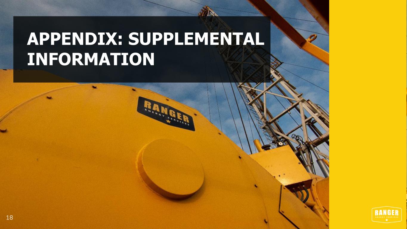 INVESTMENT THESIS Maximizing Returns Through Improved Asset Utilization 16 • Significant opportunity for continued profitability growth through improved asset utilization, supported by opportunity for organic market share growth in existing markets • Attractive free cash flow generation creates multiple value creation opportunities: • Shareholder Returns: Sustainable quarterly dividend program, supplemented by $35m share repurchase program • Self-Funded M&A: Allows for pursuit of opportunistic M&A to create value through consolidation within existing end-markets and businesses Dynamic Business Model with Production-Focused Exposure and Completion Upside • Exposure to oil and gas producers across all major basins allows for strategic deployment and flexibility of asset utilization in response to changes in activity. • Capital efficiency further maximizes operating leverage to drive above-industry returns through the cycle. • Current E&P activity expected to remain consistent through 2023, with continued growth in 2024 and 2025 and a supportive long-term commodity price outlook.