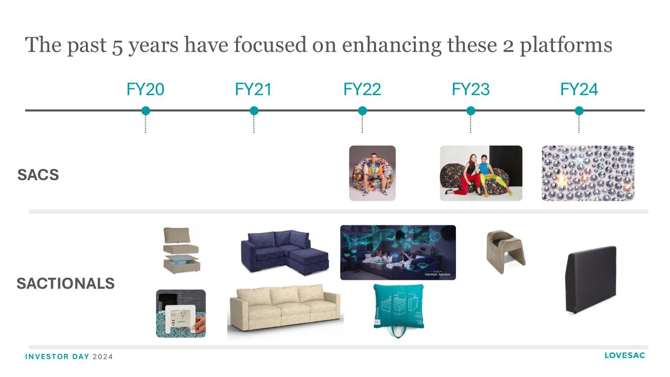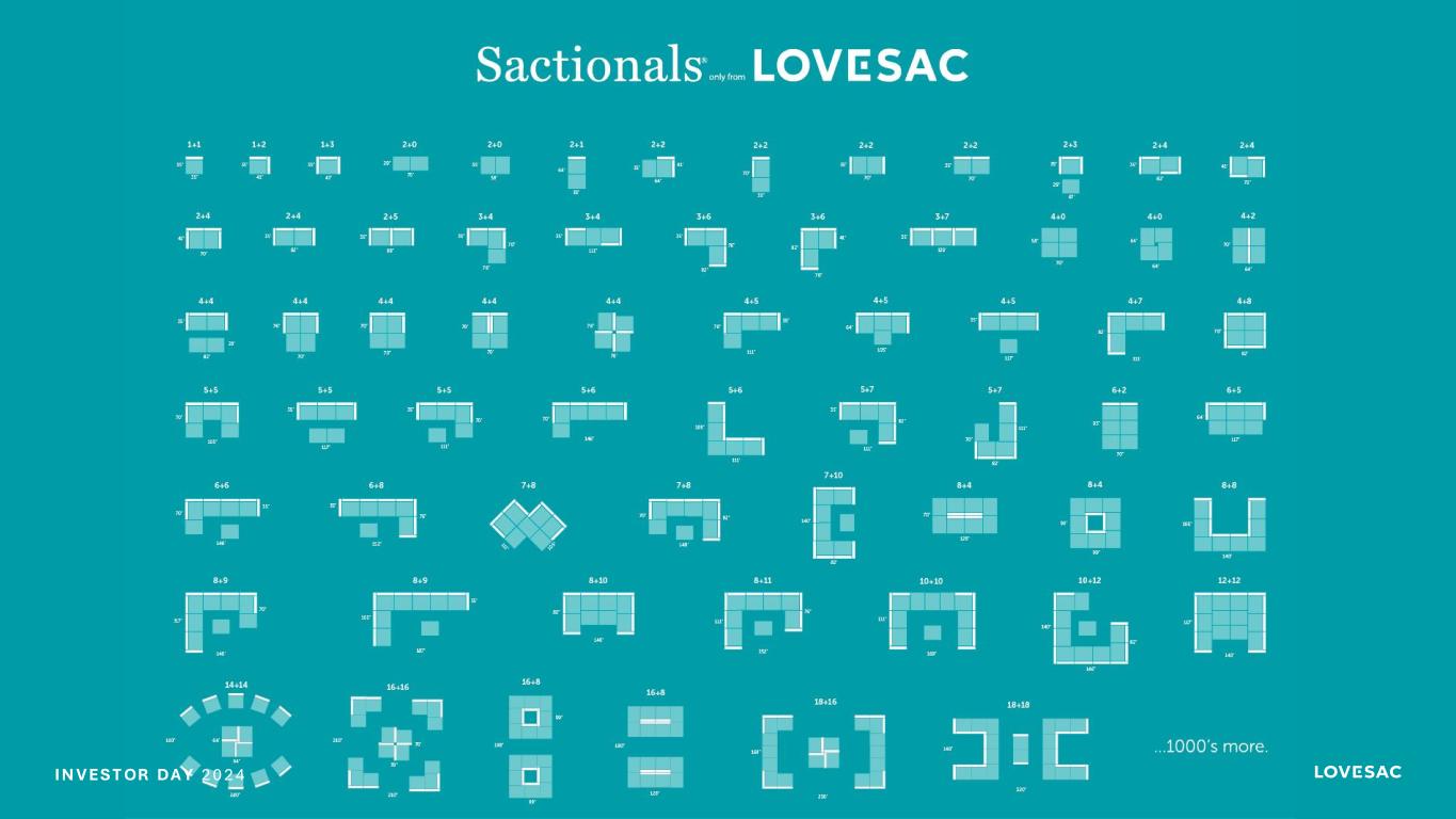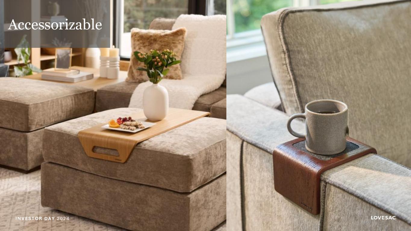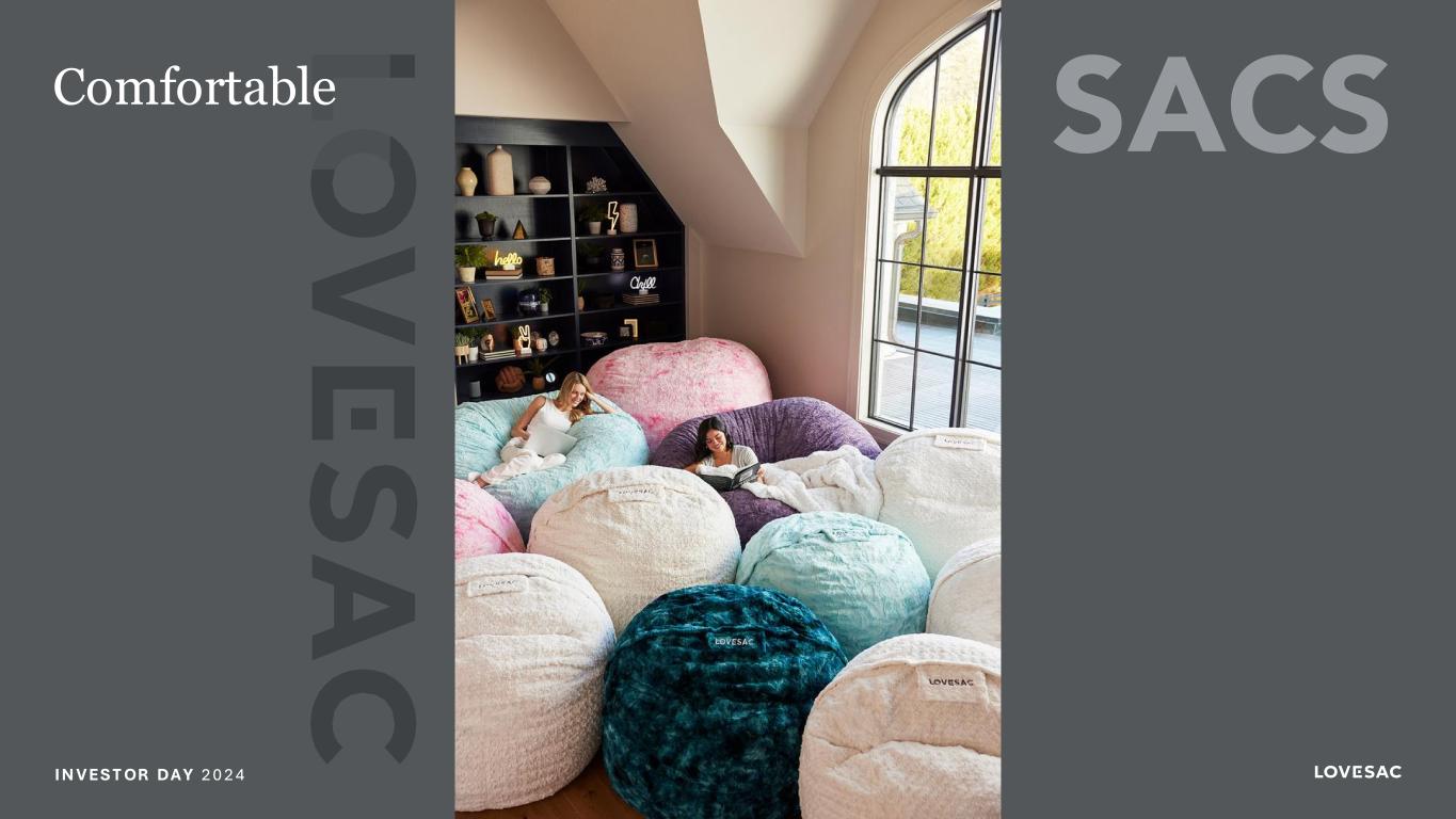 I N V ES T OR DA Y 2 0 2 4 SACTIONALS SACS This brand tree has multiple branches but we as yet have only revealed two: Sacs and Sactionals. Each branch represents sizable addressable markets, which we uniquely approach through our two superpowers: Designed for Life product platforms that are built to last and designed to evolve, wrapped in Customer Acquisition Engines that convert prospects into lifelong customers and advocates .