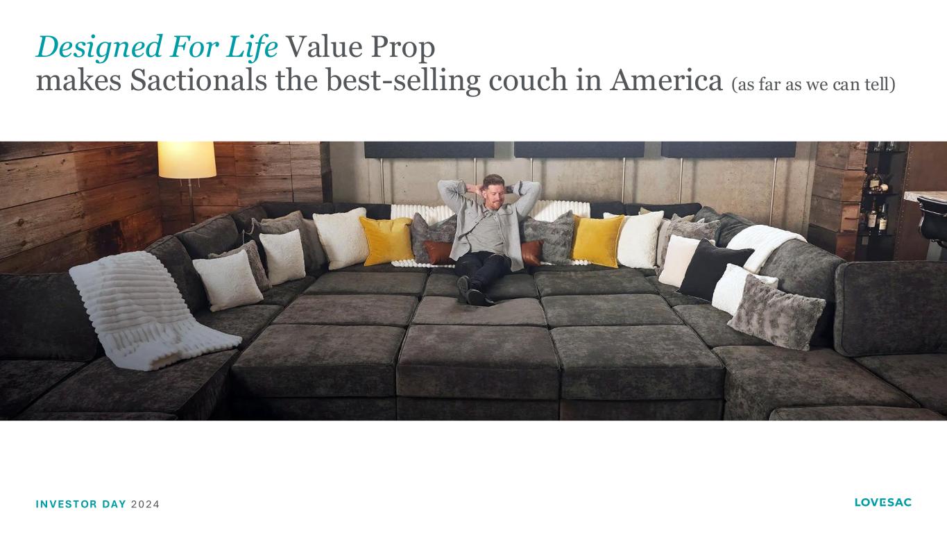 I N V ES T OR DA Y 2 0 2 4 Designed For Life Value Prop makes Sactionals the best-selling couch in America (as far as we can tell)