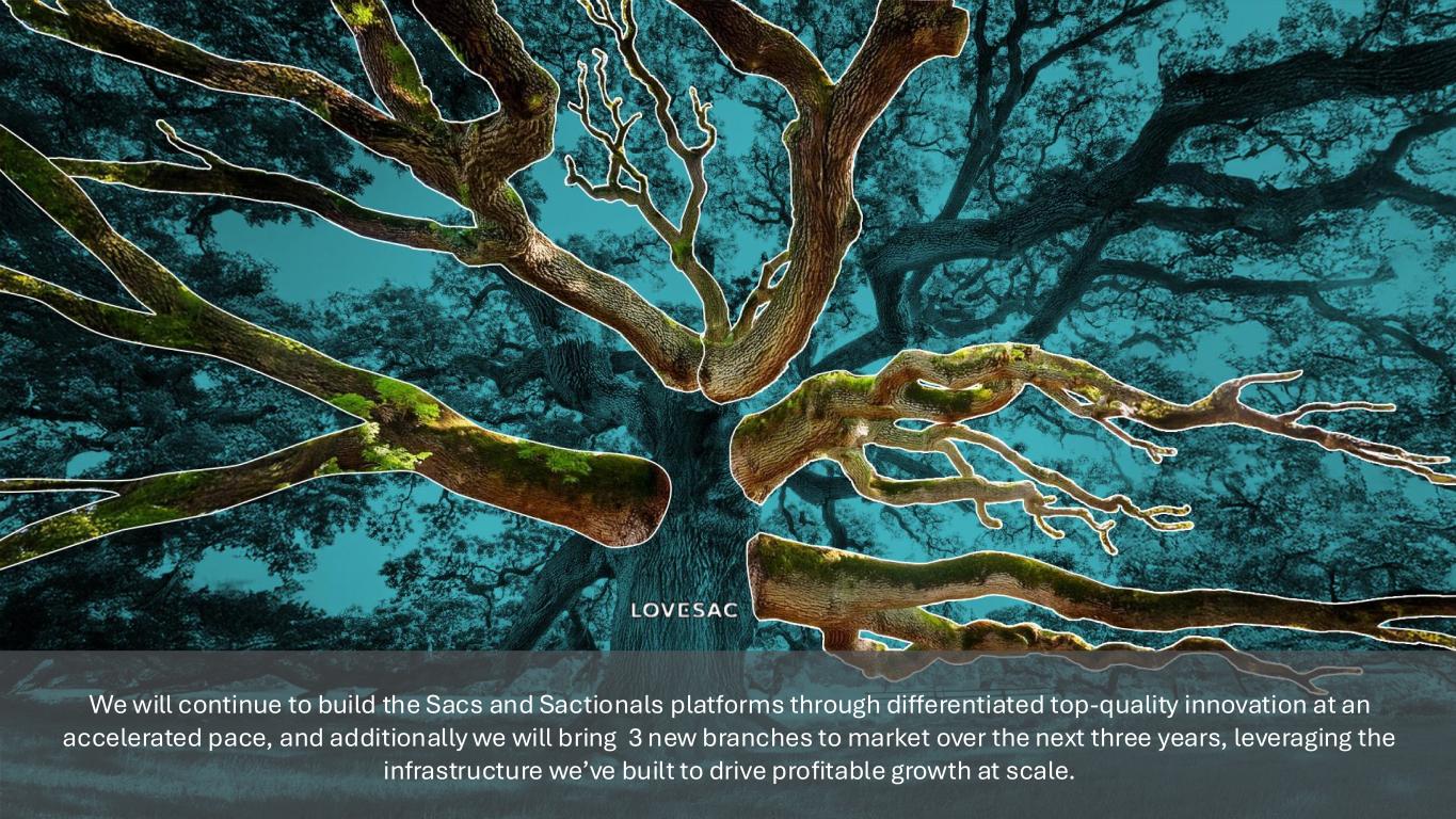 I N V ES T OR DA Y 2 0 2 4 We will continue to build the Sacs and Sactionals platforms through differentiated top-quality innovation at an accelerated pace, and additionally we will bring 3 new branches to market over the next three years, leveraging the infrastructure we’ve built to drive profitable growth at scale.