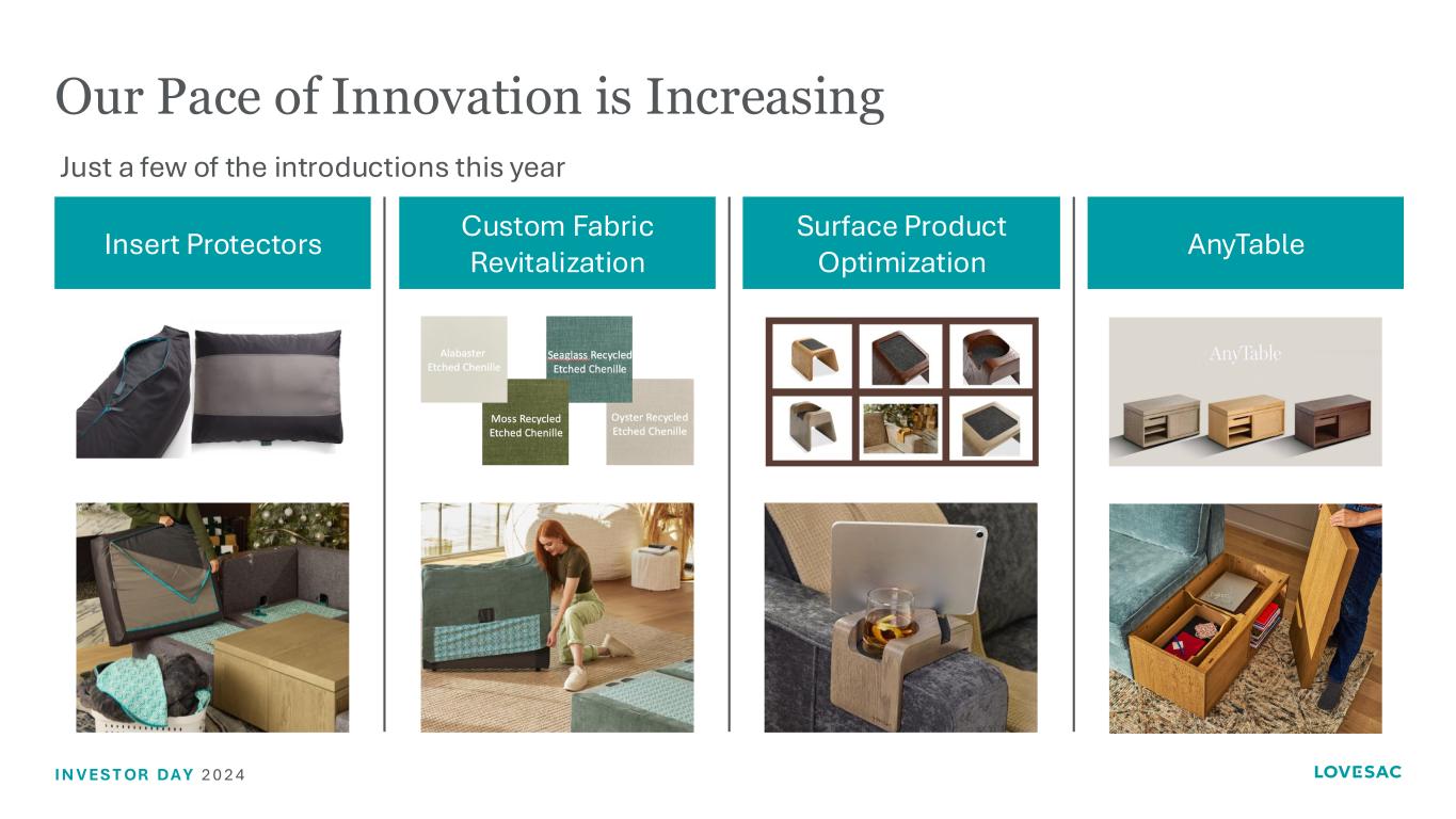 I N V ES T OR DA Y 2 0 2 4 Our Pace of Innovation is Increasing Custom Fabric Revitalization Surface Product Optimization AnyTableInsert Protectors Just a few of the introductions this year