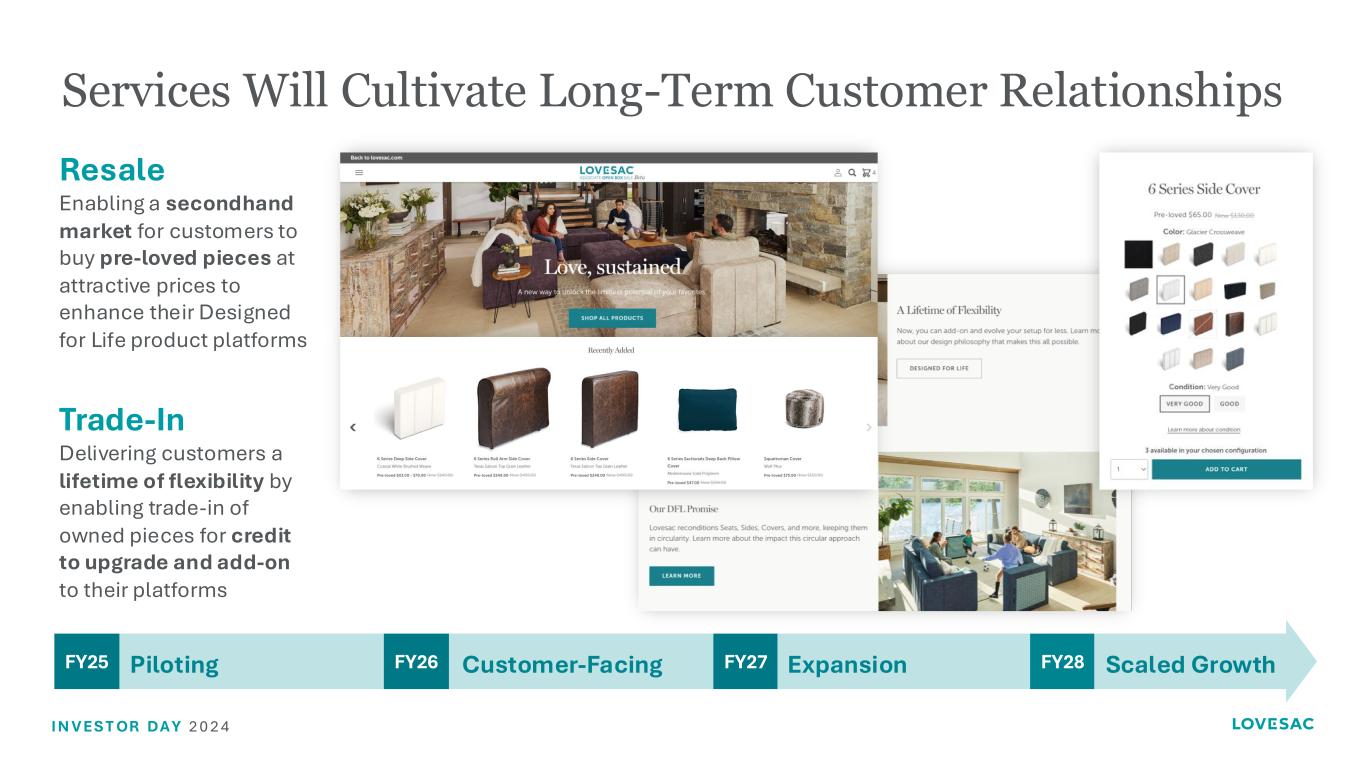 I N V ES T OR DA Y 2 0 2 4 Services Will Cultivate Long-Term Customer Relationships FY25 FY26 FY28FY27Piloting Customer-Facing Expansion Scaled Growth Trade-In Delivering customers a lifetime of flexibility by enabling trade-in of owned pieces for credit to upgrade and add-on to their platforms Resale Enabling a secondhand market for customers to buy pre-loved pieces at attractive prices to enhance their Designed for Life product platforms