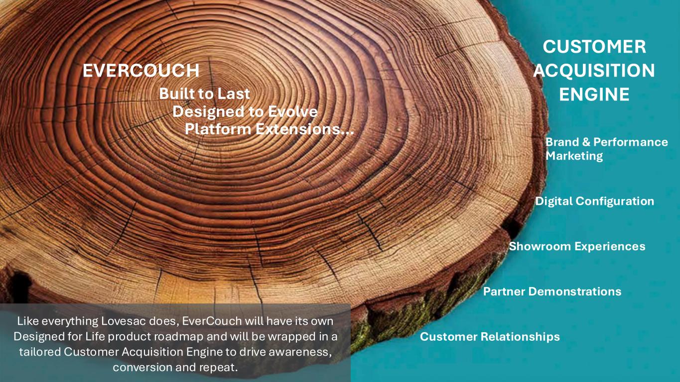 I N V ES T OR DA Y 2 0 2 4 Investor Day 2024 EVERCOUCH CUSTOMER ACQUISITION ENGINE Brand & Performance Marketing Digital Configuration Showroom Experiences Partner Demonstrations Customer Relationships Built to Last Designed to Evolve Platform Extensions… Like everything Lovesac does, EverCouch will have its own Designed for Life product roadmap and will be wrapped in a tailored Customer Acquisition Engine to drive awareness, conversion and repeat.